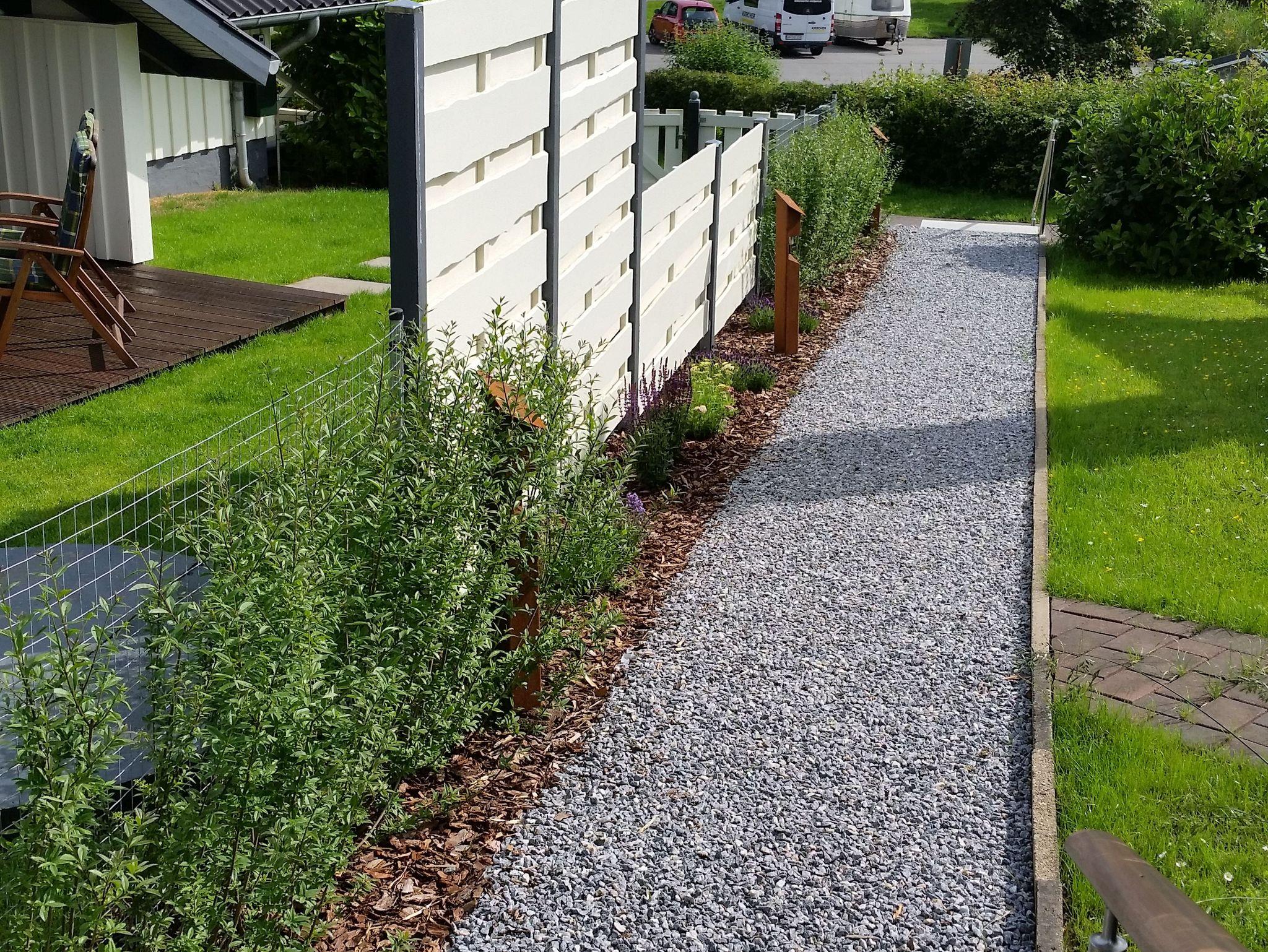Das Haus erreicht man über 2 Treppen und einen befestigten Weg (Splittbelag).