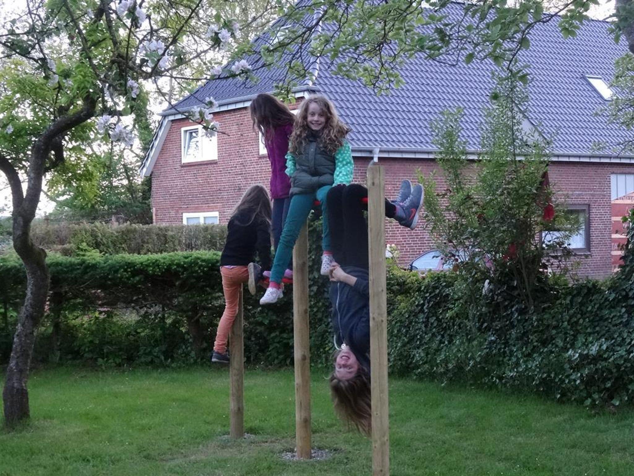 großen Laubwald, einen Spielplatz, eine Tischtennisplatte, Tischfußball, einen