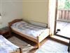 Außerdem sind im Parterre 2 kleine Schlafräume. Einer ist rollstuhlgerrecht mit einem Einzelbett und einem 1.00 x 2.00 m Bett, das eine elektische Hubvorrichtung bis 1,20 m Matrazenoberkante hat. Auch mit dem Lifter ist dieser Schlafraum zugänglich. Der andere Schlafraum hat ein Etagenbett.