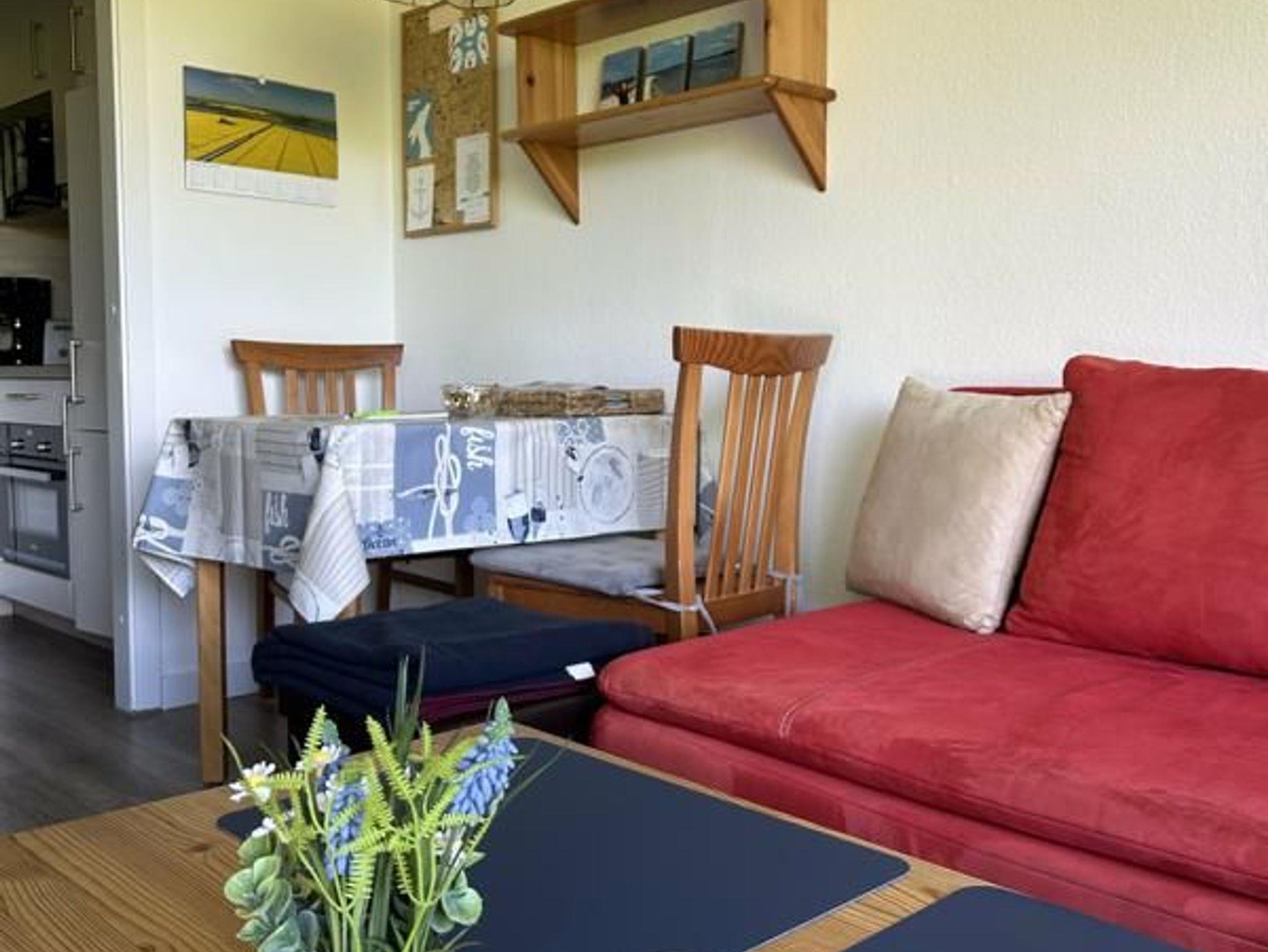 Das 43 qm große Ferienappartement erreicht man über einen Aufzug (7. Etage). Das Schlafzimmer hat ein bequemes Doppelbett und zwei Schränke mit viel Stauraum. Eine weitere Schlafmöglichkeit für eine Person gibt es im Wohnzimmer auf dem Schlafsofa. Der Wohnraum ist gemütlich eingerichtet mit Couchtisch, Esstisch (ausziehbar), Schlafsofa, modernem TV (Kabel), DVD-Spieler und Stereoanlage (Radio, CD, Kassetten). Die kleine, offen zum Wohnzimmer ausgerichtete Küche ist sehr gut ausgestattet: Geschirrspülmaschine, Mikrowelle, Backofen, Cerankochfeld, Toaster, Wasserkocher, Kaffeemaschine, Kühlschrank, separate Tiefkühleinheit und vieles mehr.