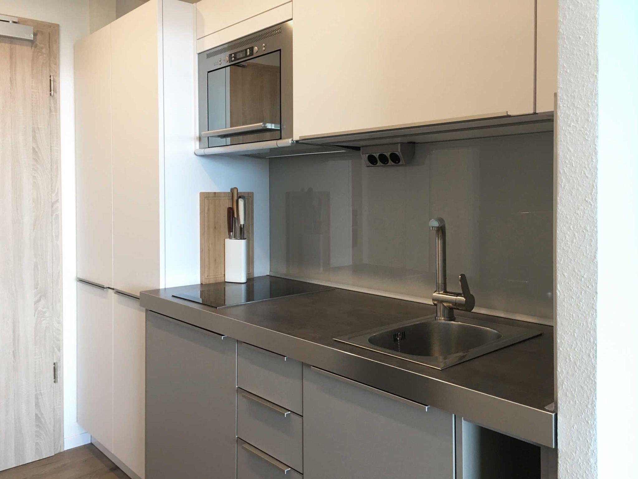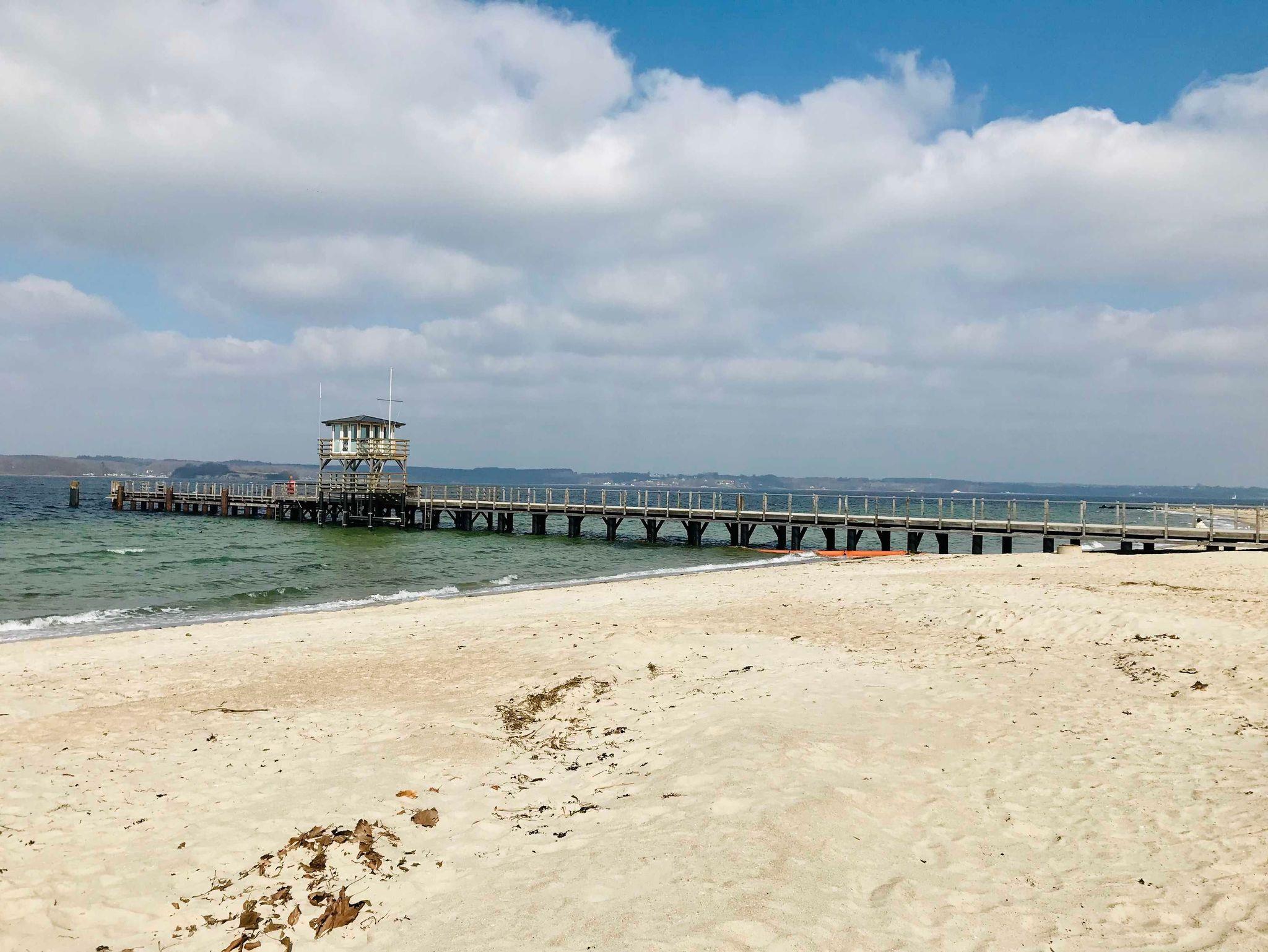 Helle, freundliche Ferienwohnung mit Balkon zur Glücksburger Strandpromenade und Blick über die Flensburger Förde bis nach Dänemark. Das kombinierte Wohn-/Schlafzimmer ist möbliert mit einem Schrank, einem Sideboard, einem Doppelbett, einer Sitzgruppe mit Sofa und einem höhenverstellbaren Tisch. Zur Unterhaltung steht ein 43-Fernseher fur Sie bereit. Die Küche ist ausgestattet mit einem Induktionskochfeld, einer Grill-Mikrowellenkombination mit Absaugfunktion und einem Kühlschrank mit Gefrierfach. Sämtliche Küchenutensilien, die ein Kochherz begehrt, sind vorhanden.