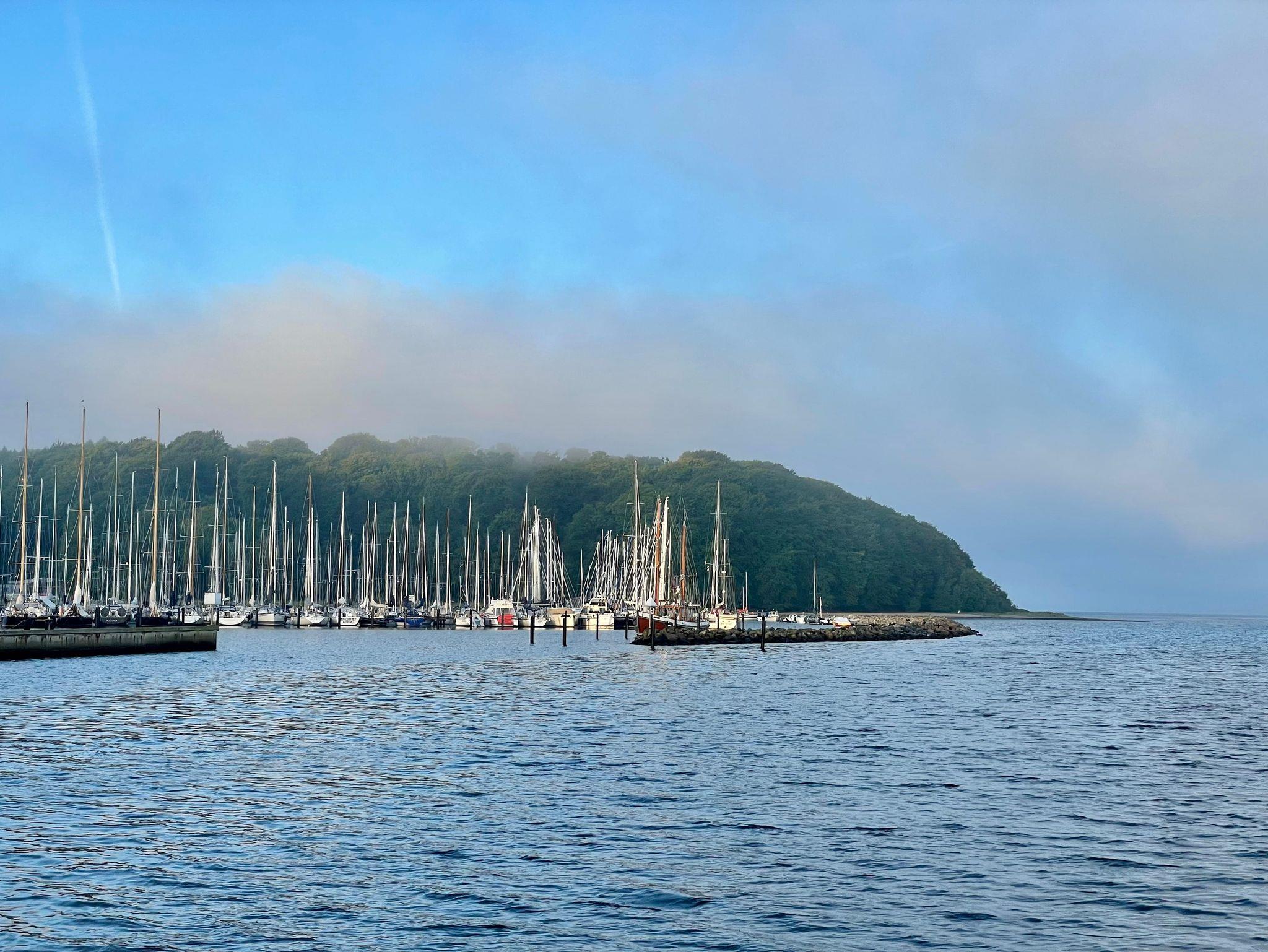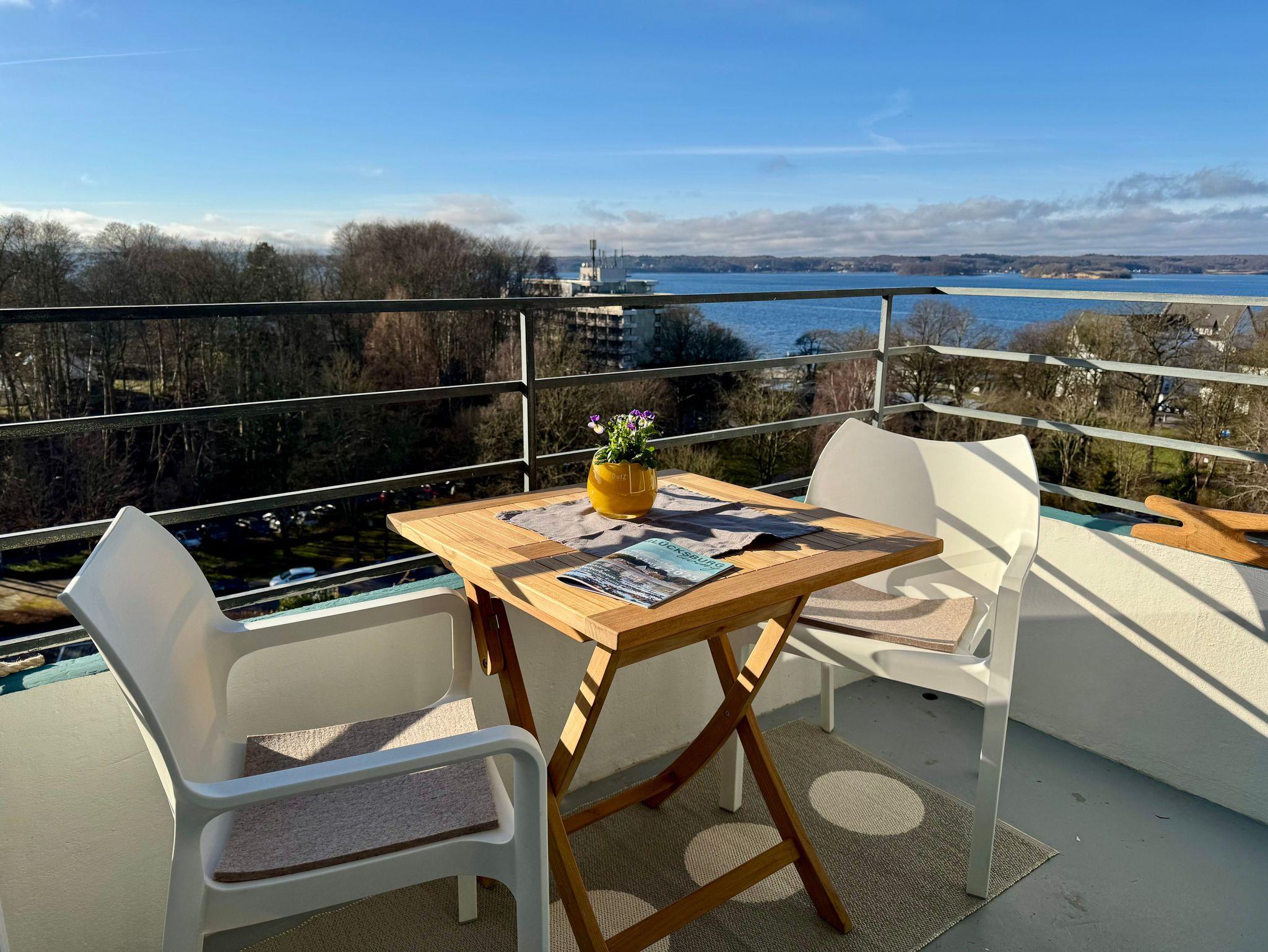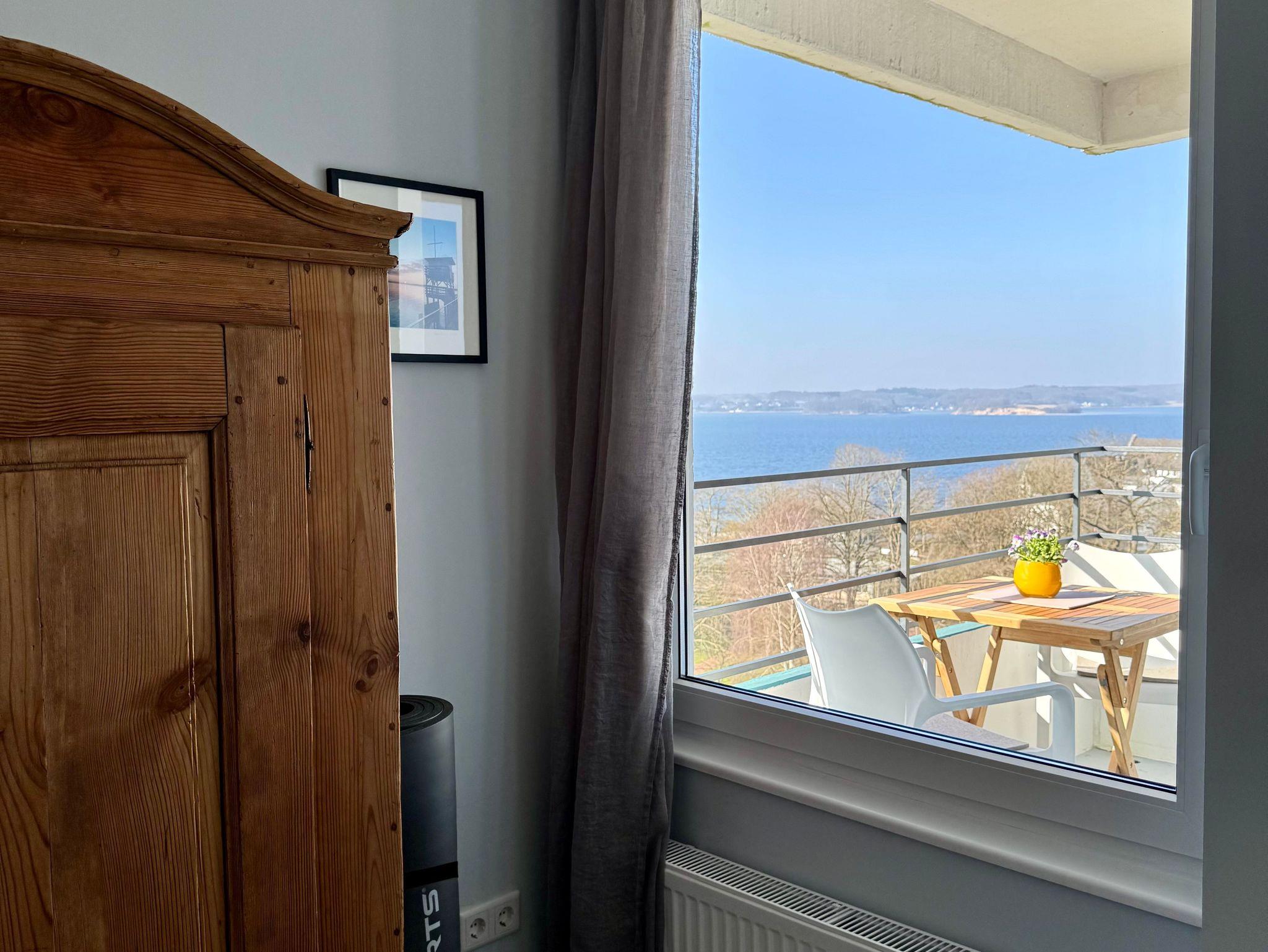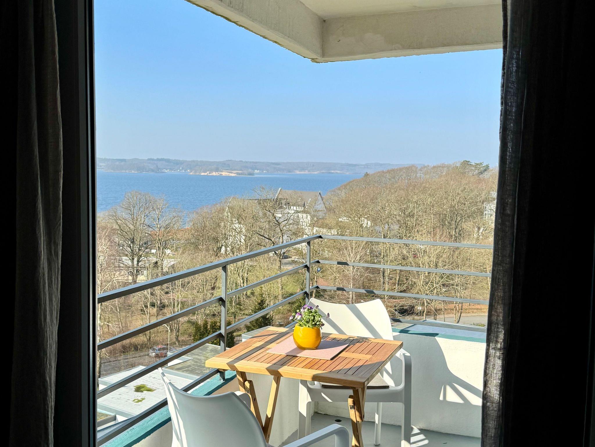 Unsere charmante Ferienwohnung liegt zur Seeseite und verfügt über einen möbelierten Balkon in sonniger Süd-Westlage. Vom Balkon oder durch die großen Fenster bietet sich Ihnen ein atemberaubend schöner Ausblick auf die Förde. Die frische Meeresbrise und der Sonnenuntergang am dänischen Ufer können Sie in allen Zügen genießen. Die helle Wohnung haben wir mit viel Liebe zum Detail nordisch stilvoll und qualitativ hochwertig für Sie eingerichtet und vermieten Sie erstmalig ab Ostern 2025.