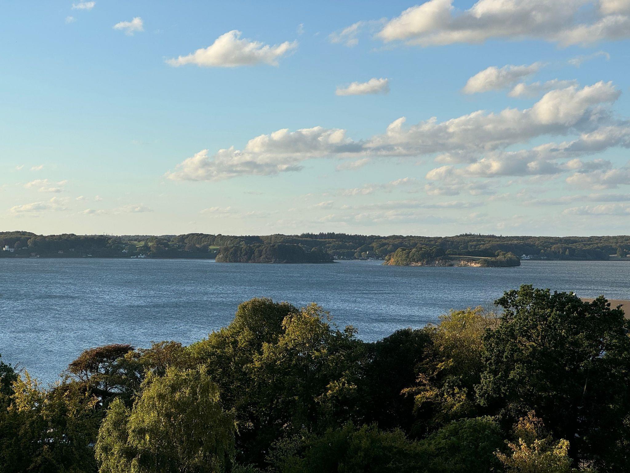 Komfortables neues Ferienapartment in zentraler Lage mit einem fantastischen Panoramablick auf die Flensburger Förde und die dänischen Ochseninseln.