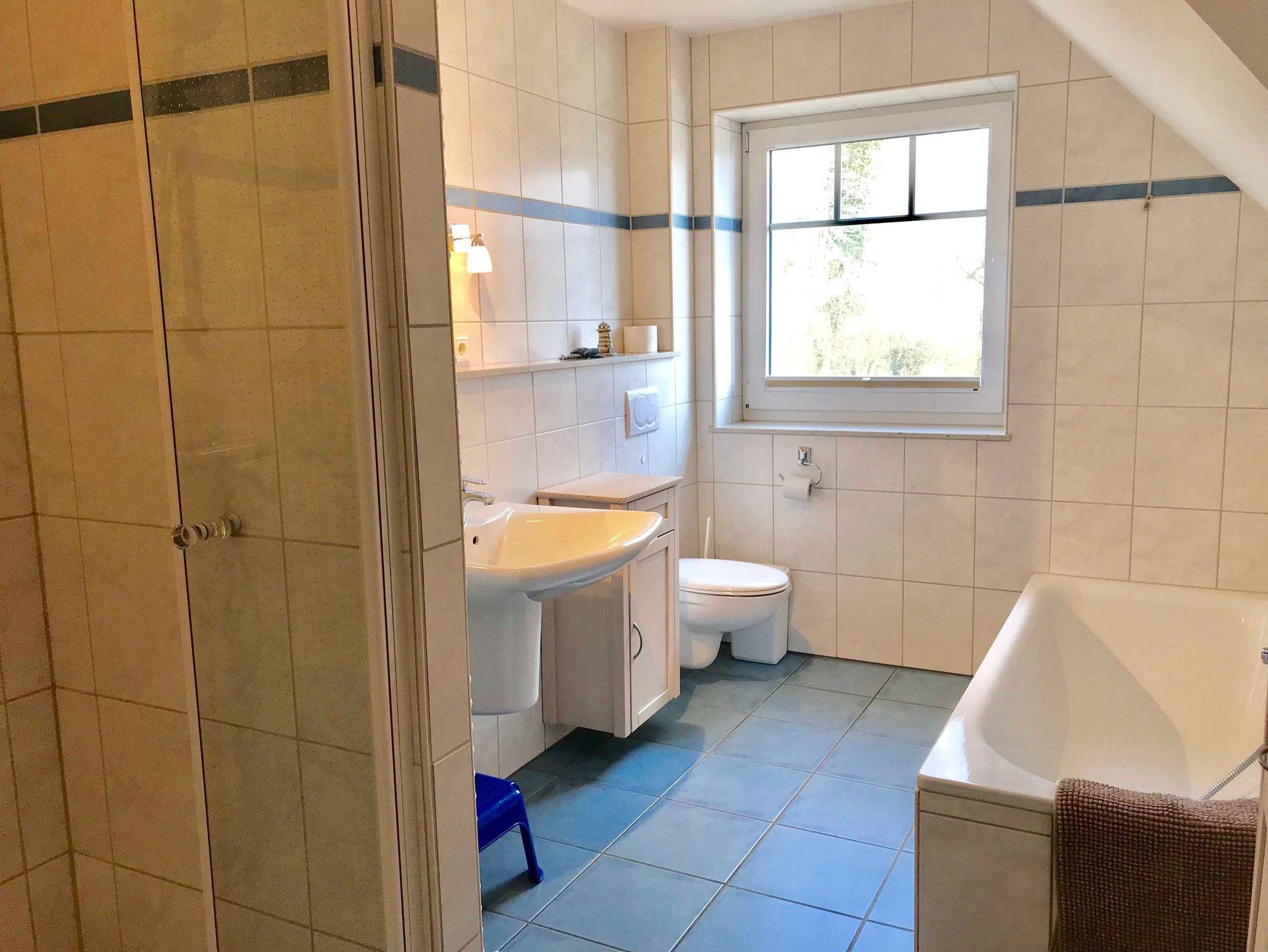 • 1 Bad mit Wanne, Dusche, Waschbecken, WC
