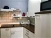 • Küche mit Kühlschrank, Herd, Mikrowelle mit Heißluft und Kaffeemaschine