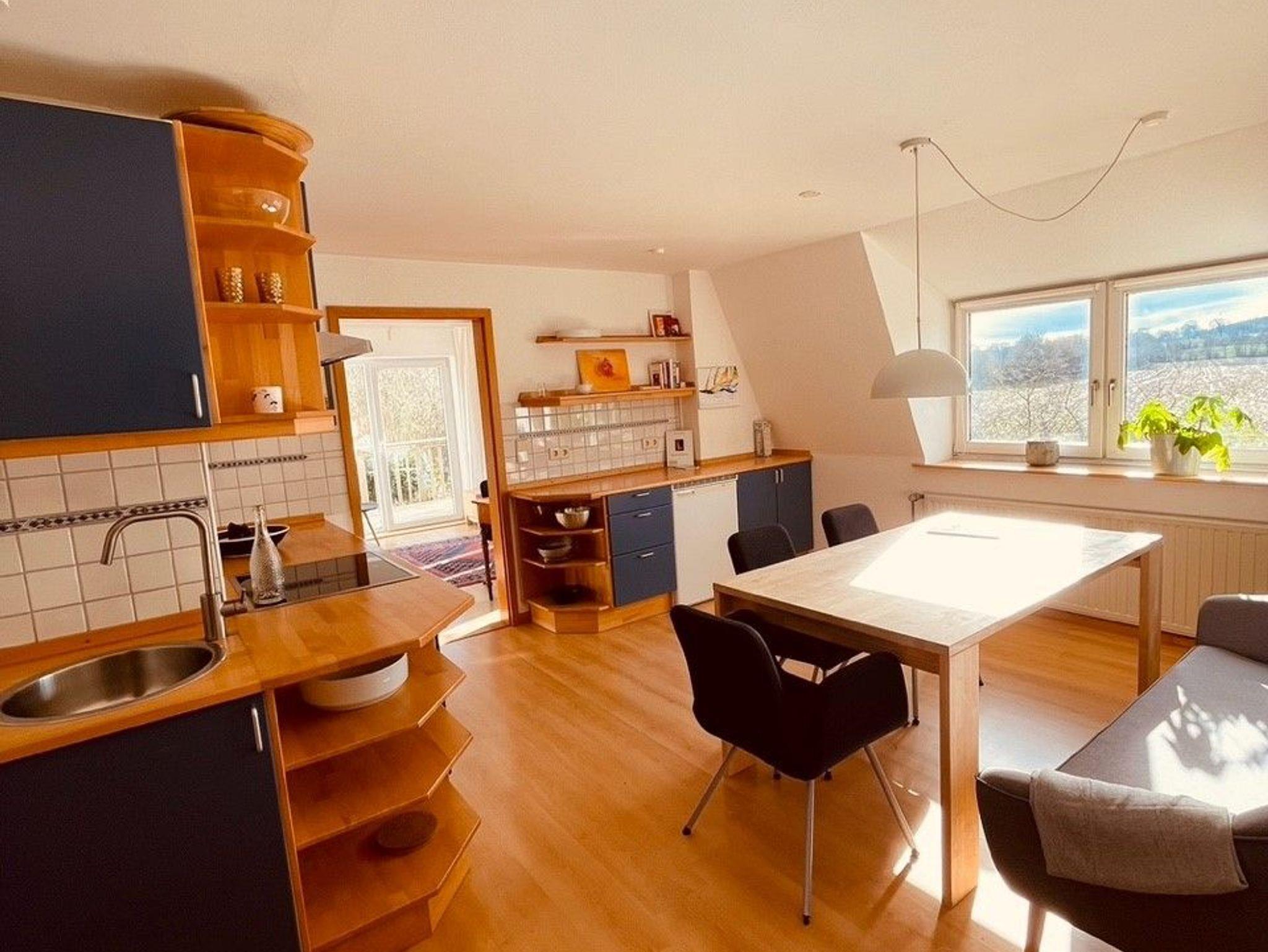 Die gesamte Ferienwohnung ist gemütlich und stillvoll eingerichtet. Unsere Wohnküche (mit Sofa) ist bestens ausgestattet für gemeinsame Kochaktionen. Im geräumigen Bad befindet sich neben der Dusche auch eine Badewanne.