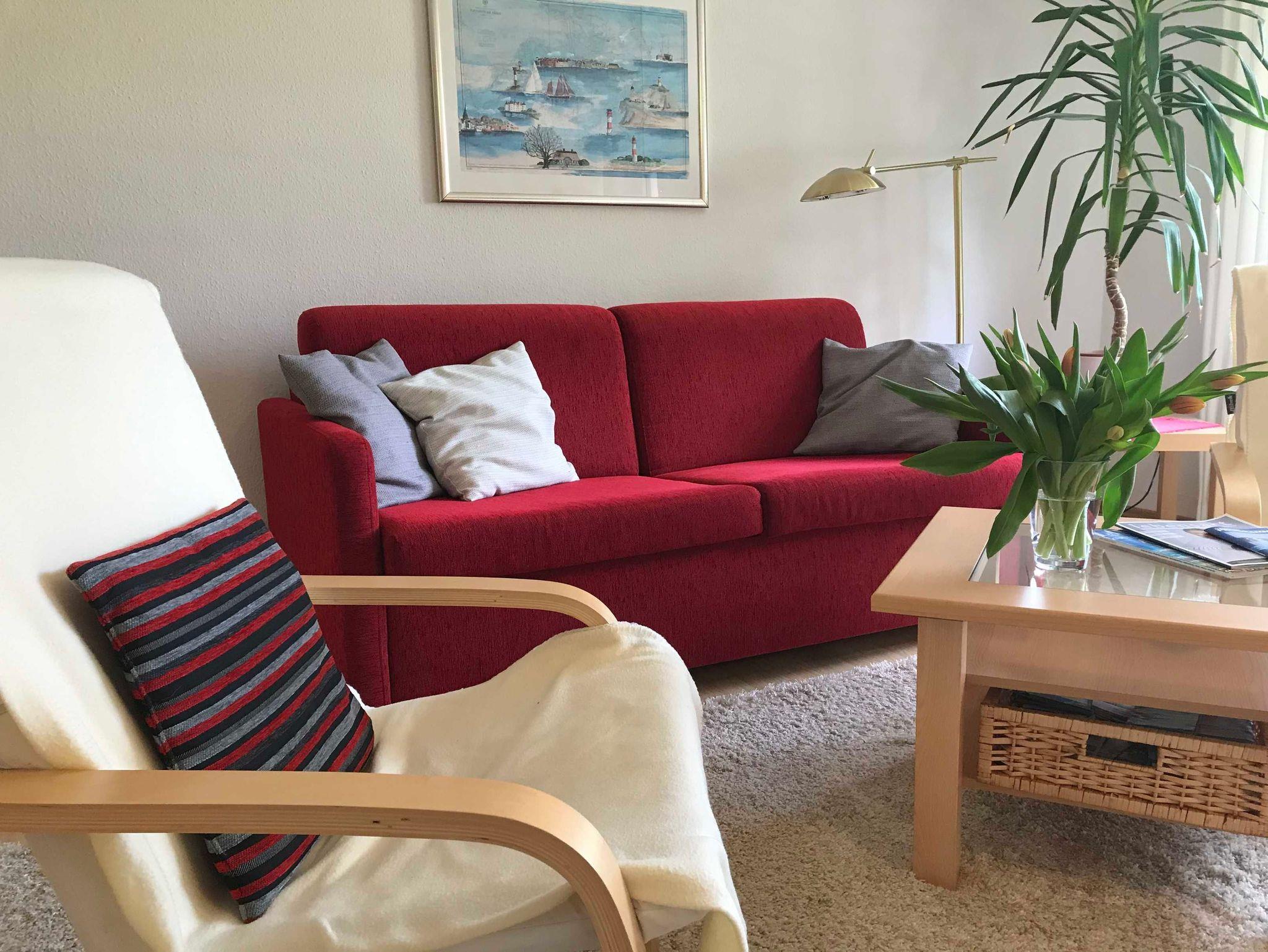 • 1 Wohn-/Schlafzimmer mit Schlafcouch für 2 Personen und einer gemütlichen Sitzecke