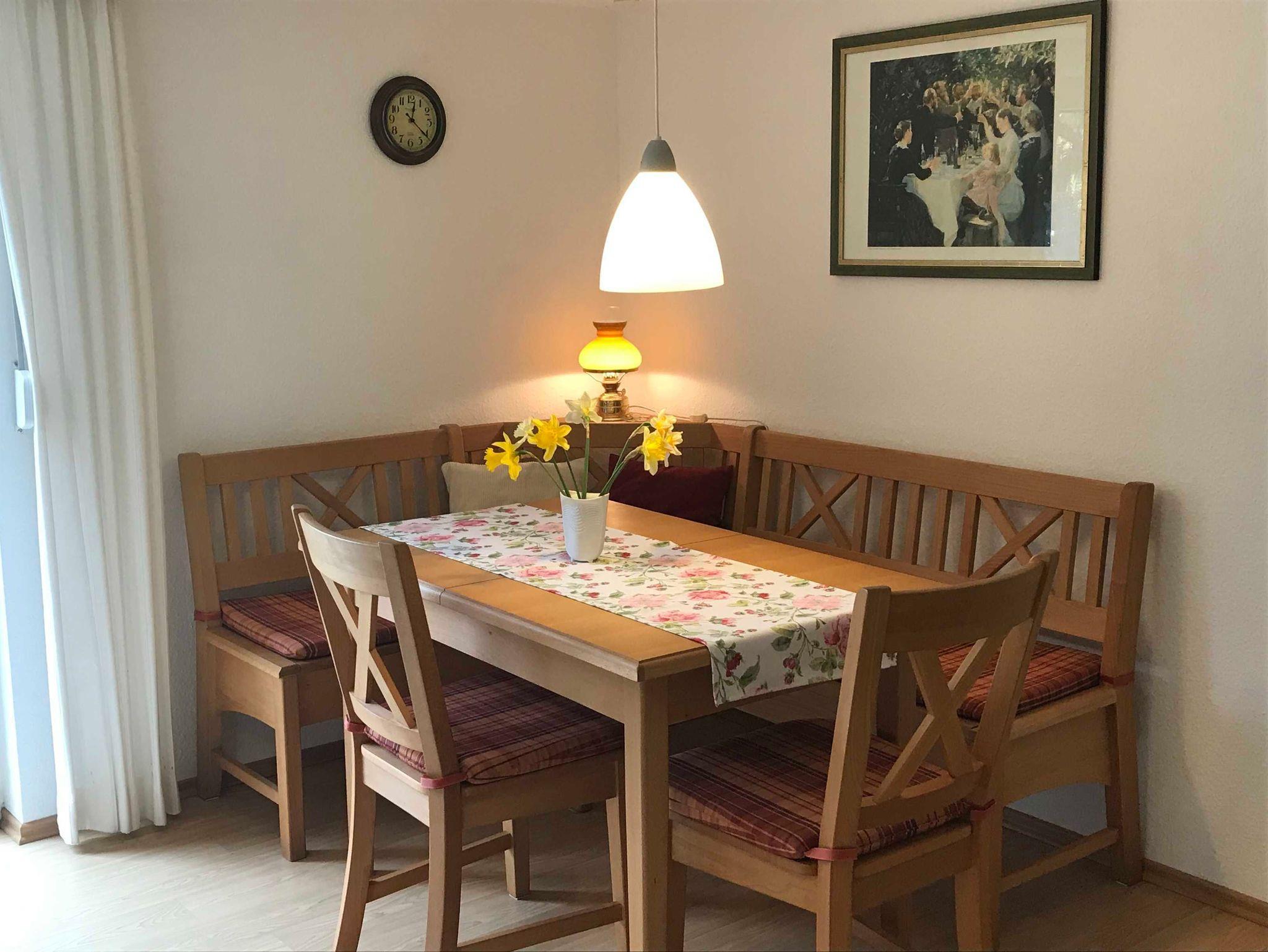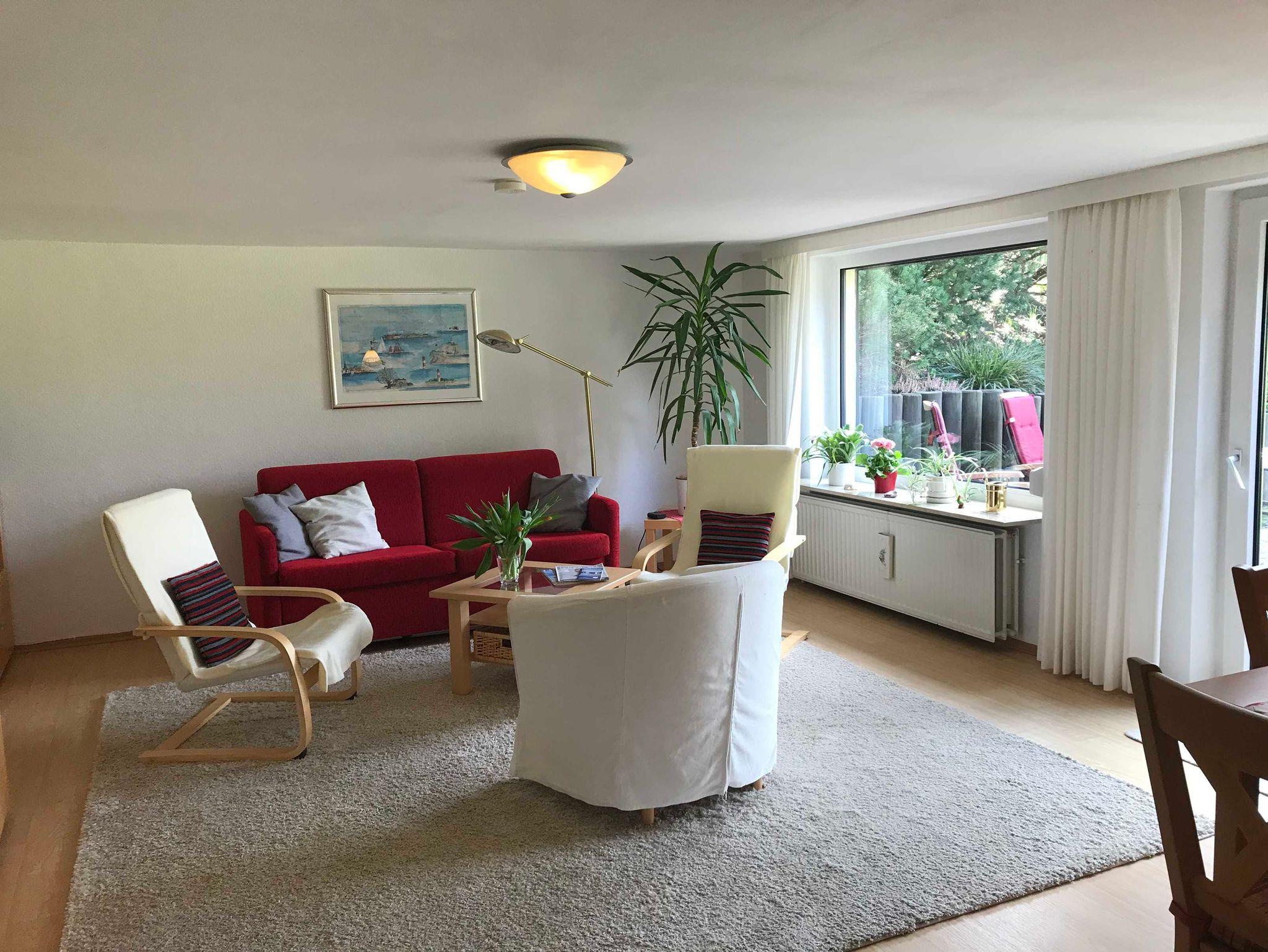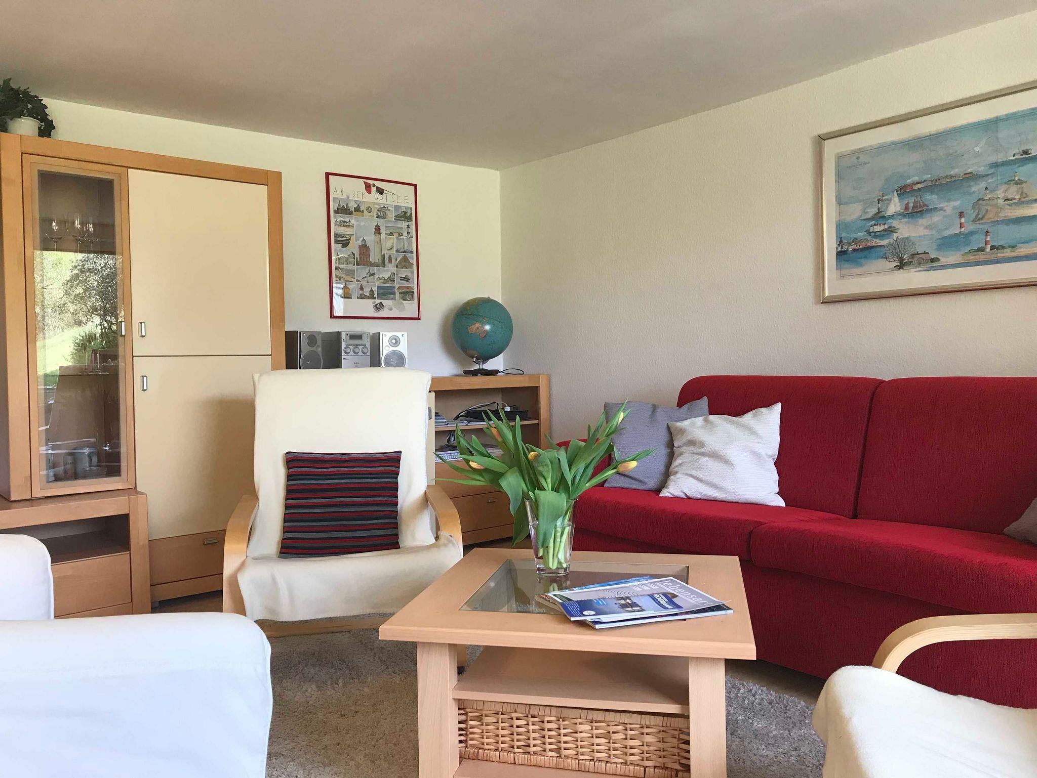 Die Ferienwohnung Valentin in Glücksburg befindet sich im Haus des Vermieters mit 1500 qm Grundstück und separatem Eingang verfügt über ein großes Wohnzimmer mit komfortabler Schlafcouch, eine große Essecke im Wohnzimmer mit Fernseher, Stereoanlage und DVD-Player. Diese Ferienwohnung bietet auch eine Küche mit Sitzecke, Mikrowelle, Herd und Geschirrspüler. Ein Schlafzimmer mit Doppelbett und Schrank. Terrasse mit Gartenstühlen und Grill sind vorhanden, so dass Sie die gemütlichen Sommerabende im Glücksburg-Urlaub in vollen Zügen genießen können.