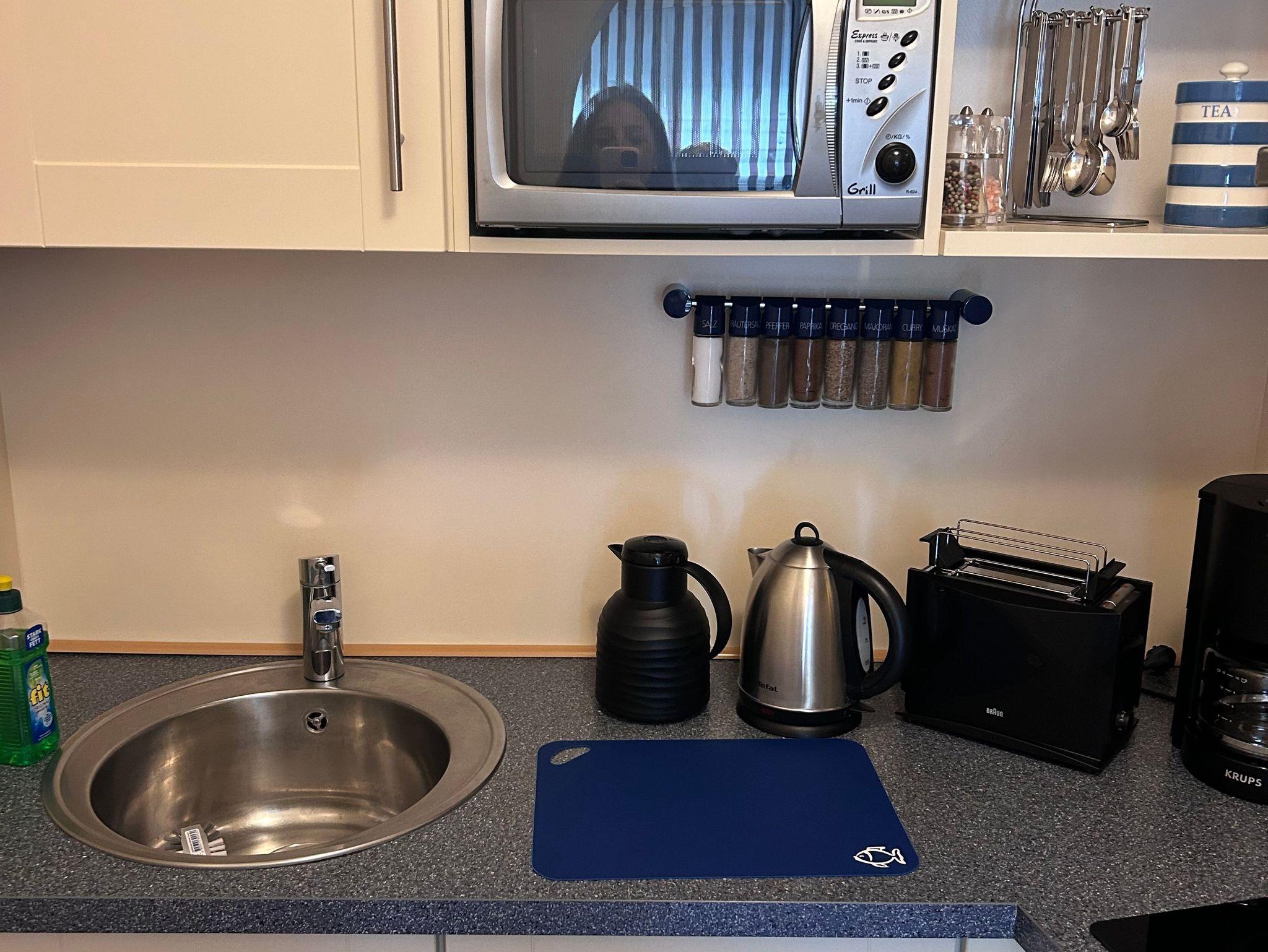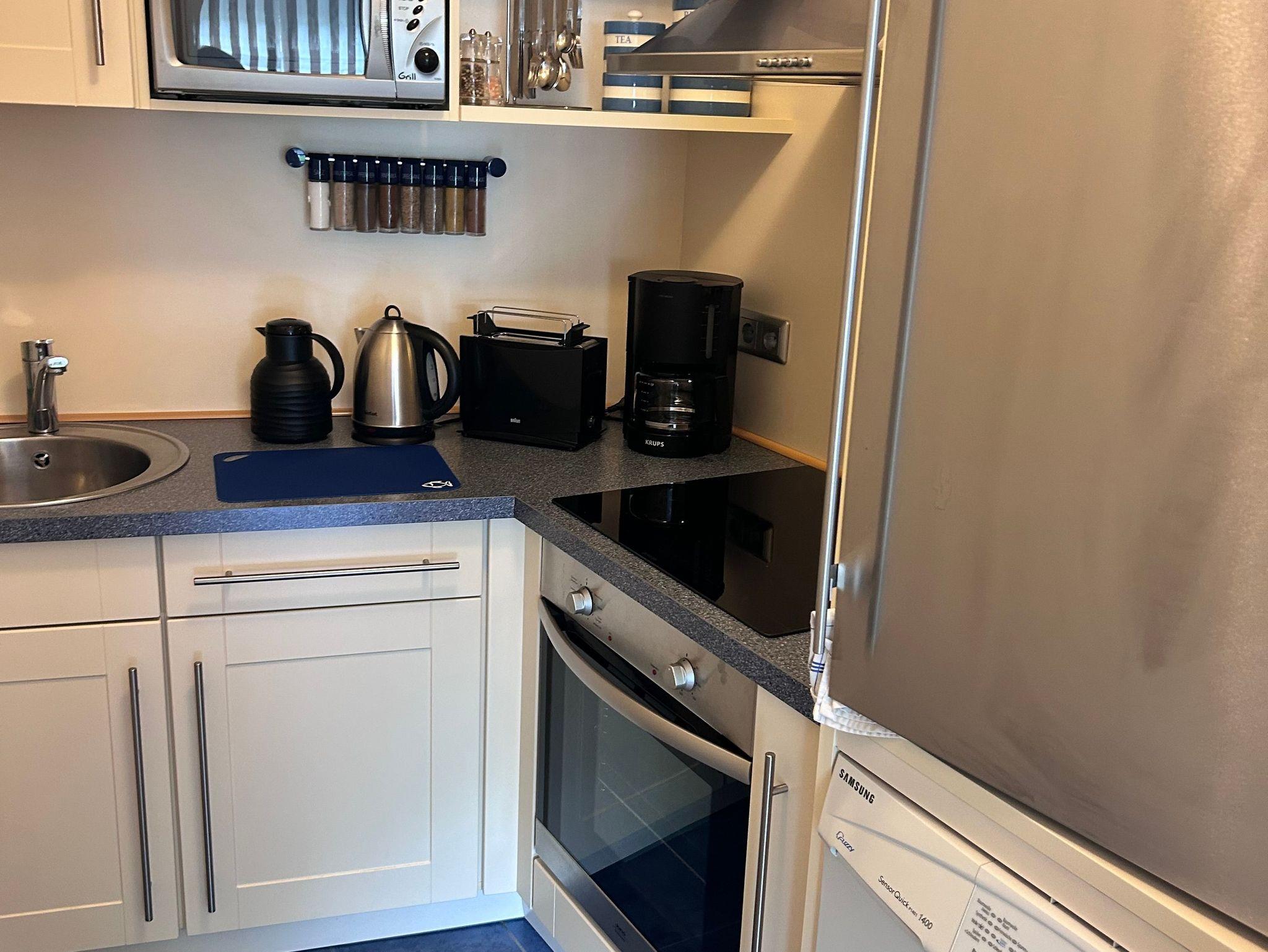 Helles, lichtdurchflutetes 2-Zimmer-Appartement für 2 Personen mit Duschbad, Einbauküche mit Backofen, Kühlschrank mit Gefriermöglichkeit, Waschmaschine, Mikrowelle und Kaffeemaschine.