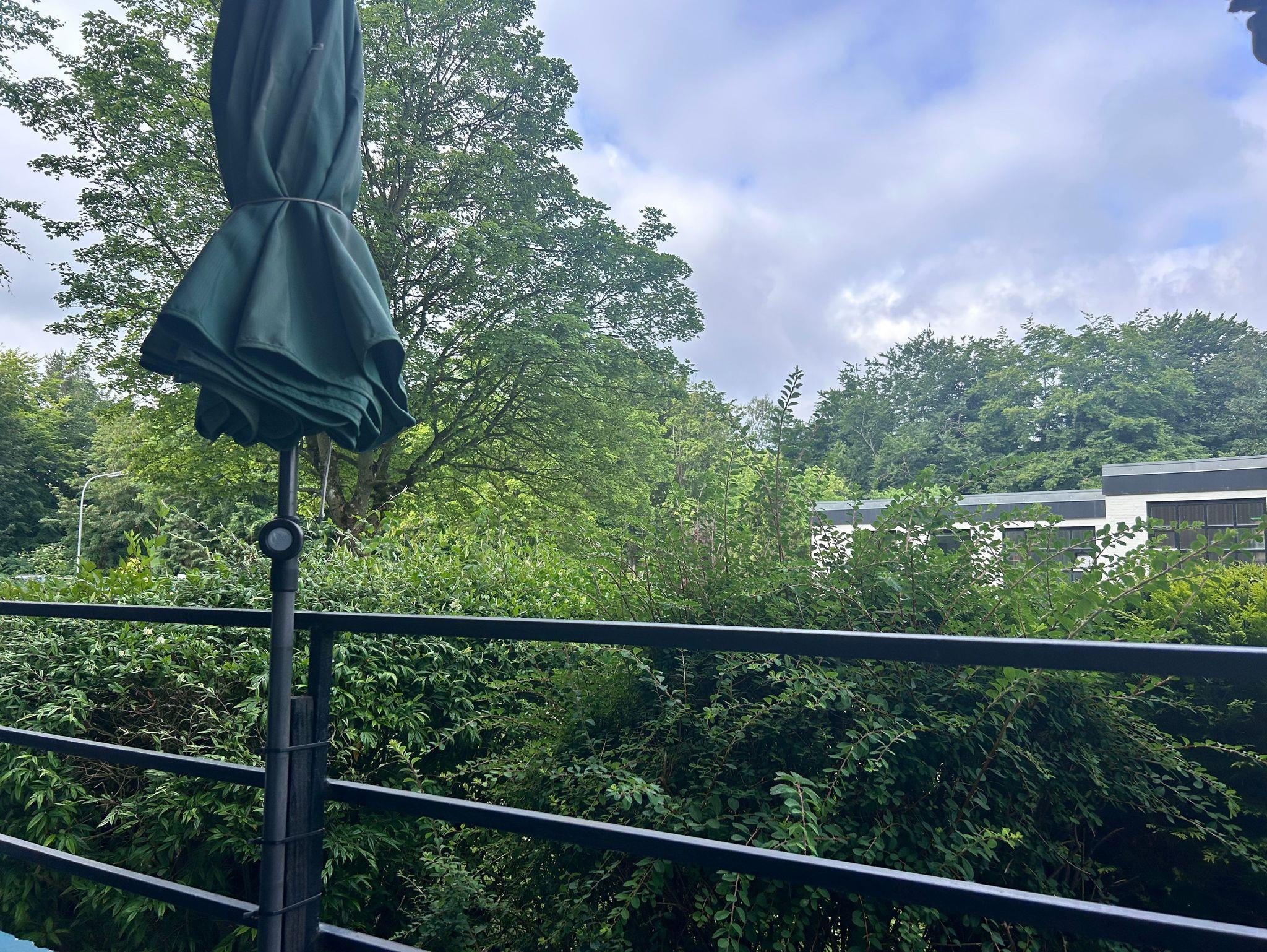 Vom lichdurchfluteten Wohnzimmer kommt man direkt auf einen überdachten Balkon, wo die Abendsonne auch bei Regen genossen werden kann.