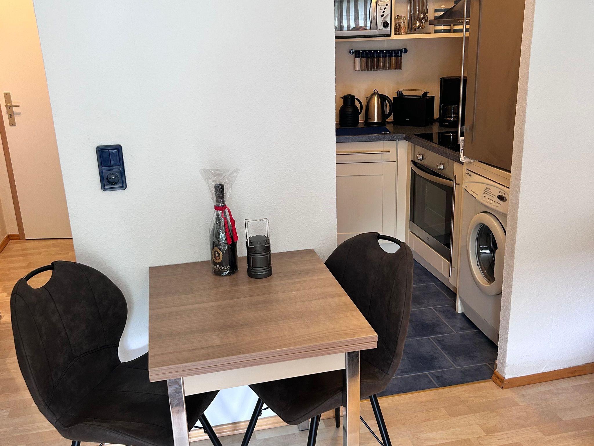 Das Appartement ist aufgeteilt in einen hellen und gemütlichen Wohn-und Essbereich mit offener, komplett ausgestatteter Einbauküche, einem Duschbad. Ein separates Schlafzimmer mit Boxspringbett (1,80 x2,00m)