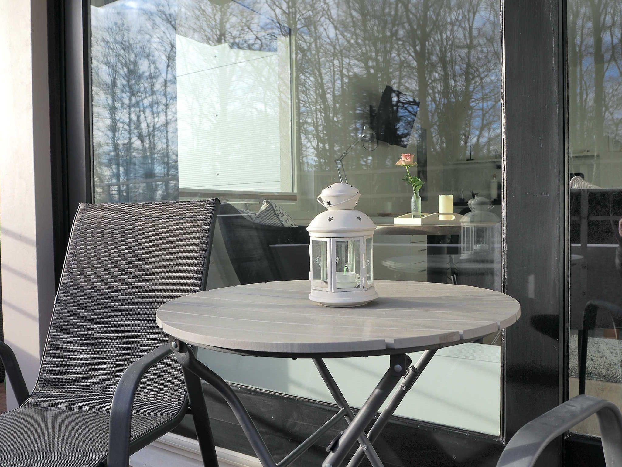 Das 33qm große, neu renovierte, lichtdurchflutete 1-Zimmerappartement für zwei Personen mit Eckbalkon in Sonnenlage und Ausblick ins Grüne befindet sich im 4. Stock des Hotelgebäudes Intermar und liegt direkt an der Strandpromenade von Glücksburg. Ein stilvolles und harmonisches Ambiente ist garantiert.