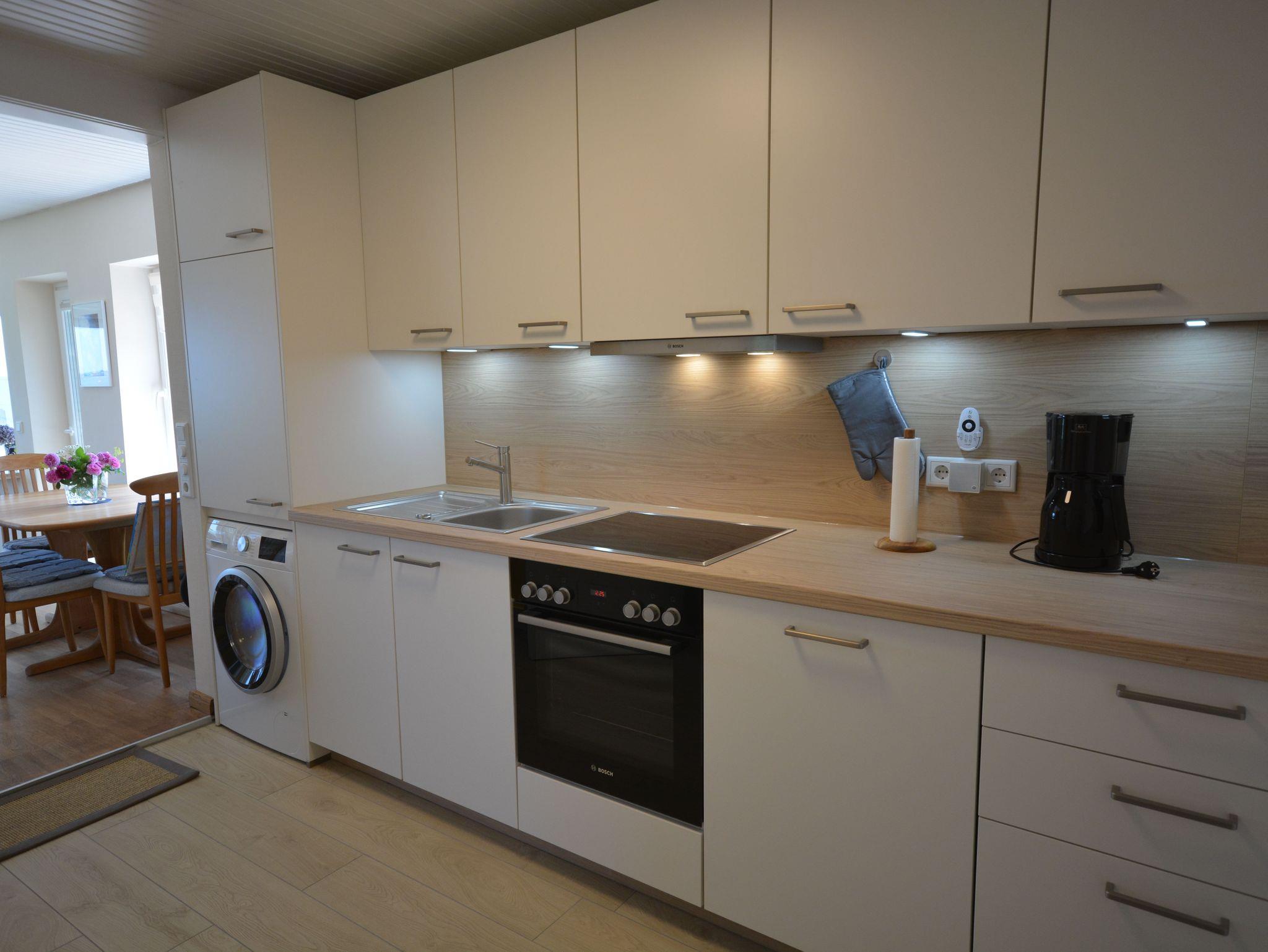 Das Ferienhaus ist im dänischen Stil eingerichtet, mit offener Küche zum Wohnbereich und 1 Schlafzimmer mit