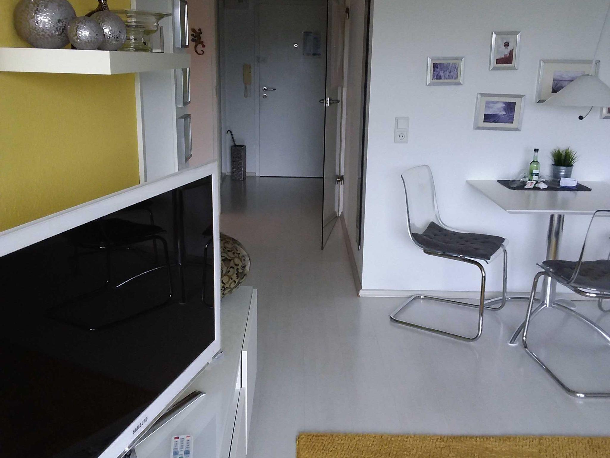 Die Ferienwohnung verfügt über ein helles Wohnzimmer mit gemütlicher Couch, Flachbildschirm, Musikanlage, ein Schlafzimmer mit Doppelbett, eine Einbauküche, ein Duschbad sowie einen Balkon mit Gartenmöbeln.