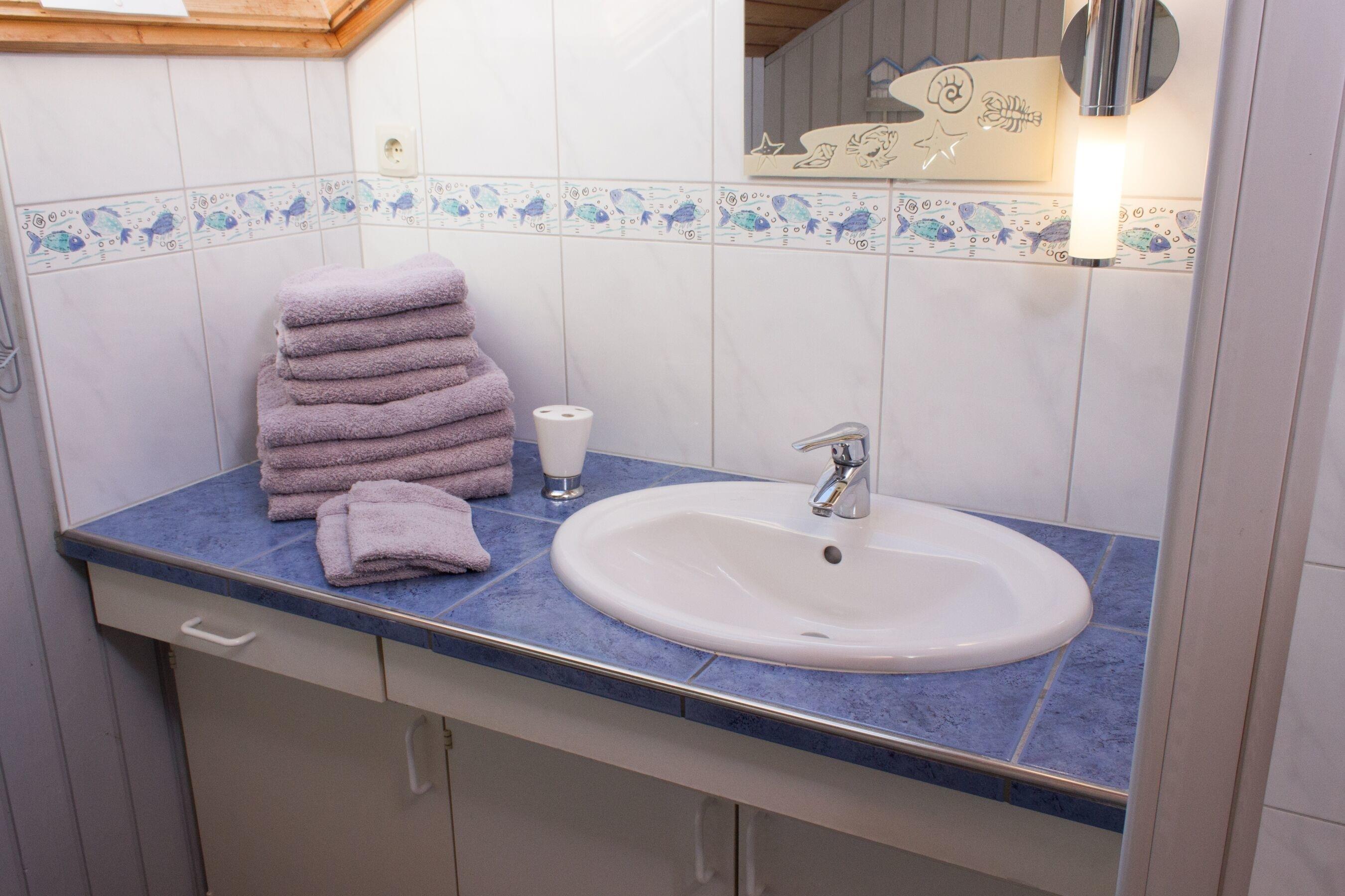 Das Badezimmer verfügt über eine Dusche und ein WC und sorgt für den nötigen Komfort während Ihres Aufenthalts. Nach einem aktiven Tag an der frischen Luft können Sie sich hier entspannen und neue Energie tanken.