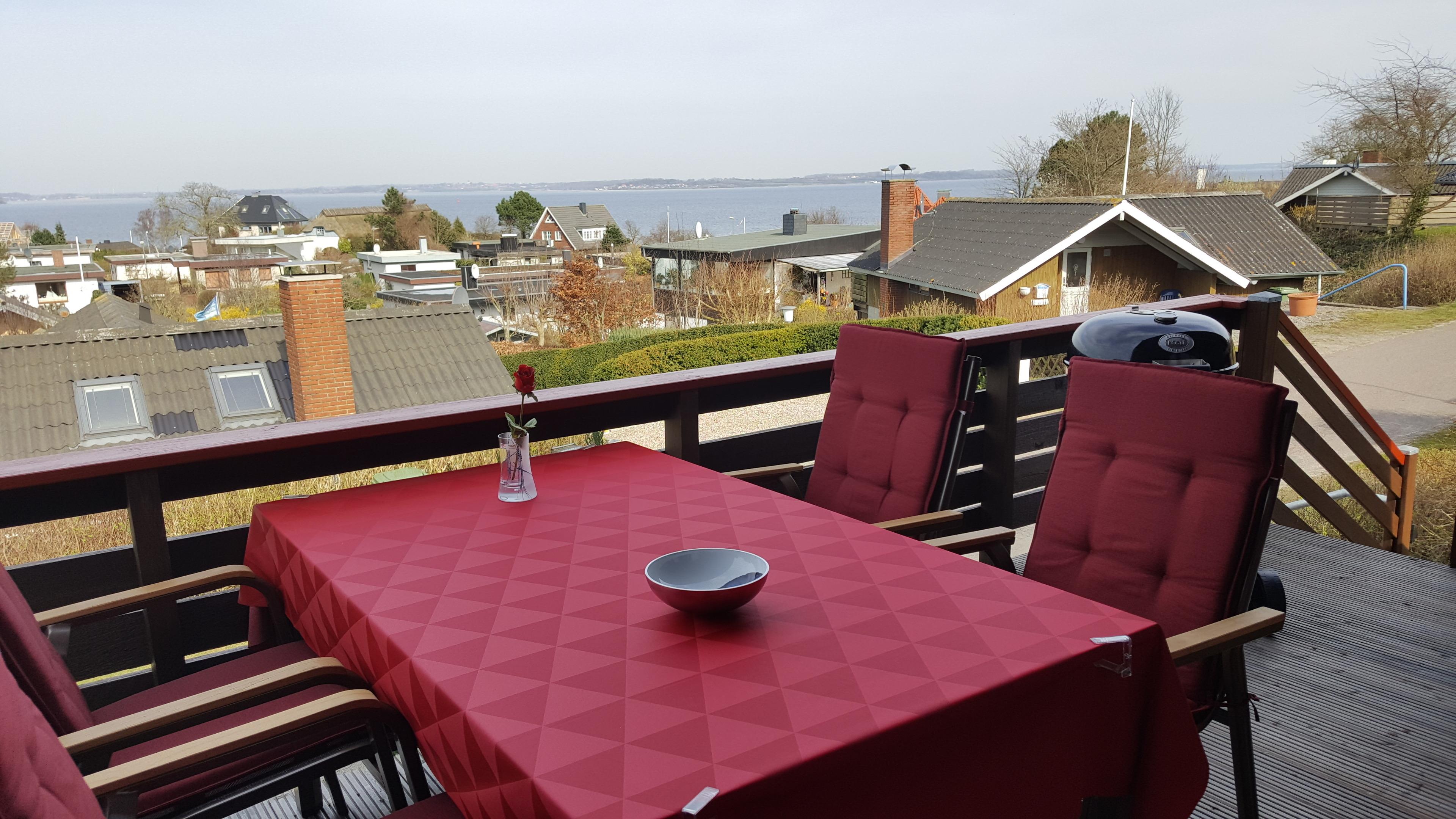 Im Außenbereich bietet das Ferienhaus Fjordstuga zahlreiche Möglichkeiten, die frische Luft und die wunderschöne Umgebung zu genießen. Auf der offenen Terrasse können Sie in bequemen Gartenmöbeln Platz nehmen und den Blick auf den gepflegten Garten genießen. Ein Strandkorb lädt zum Verweilen ein, während der Grill für gemütliche Barbecue-Abende bereitsteht. Eine zweite Terrasse mit Panoramablick auf die Flensburger Förde bietet den perfekten Platz, um den Sonnenuntergang zu genießen und die Ruhe der Umgebung zu erleben.