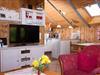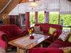 Das großzügige Wohnzimmer ist mit einer bequemen Sofaecke, einem SAT-TV mit Flachbildschirm sowie einem Kaminofen ausgestattet, der an kühleren Abenden für eine behagliche Atmosphäre sorgt. Große Fenster bieten einen wunderschönen Blick in den Garten und lassen viel Tageslicht herein.
