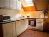 Die offene Küchenzeile ist mit allem ausgestattet, was Sie für einen entspannten Aufenthalt benötigen: Backofen, Kühlschrank, Spülmaschine, Mikrowelle, Kaffeemaschine, Toaster und Wasserkocher bieten höchsten Komfort. Der angrenzende Essbereich ist der ideale Ort, um gemeinsam zu speisen und die Erlebnisse des Tages zu teilen.
