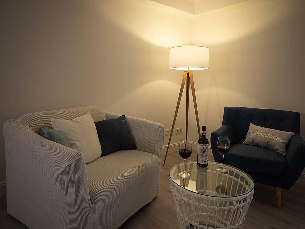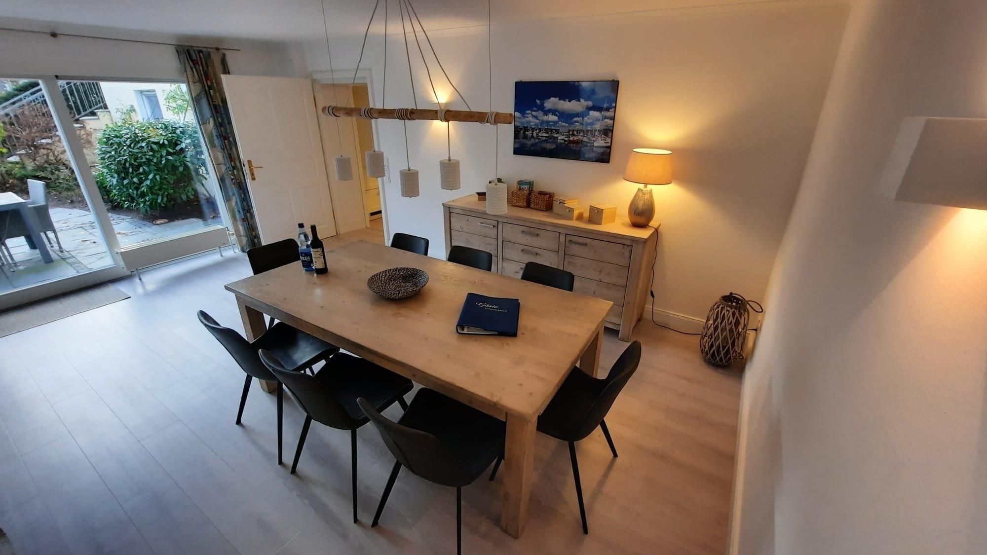 Im Wohnzimmer erwartet Sie ein modernes und helles Raumkonzept, das Gemütlichkeit und Funktionalität vereint. Hier befindet sich eine hochwertige Schlafcouch, die zusätzlichen Platz für Gäste oder für eine angenehme Nachtruhe bietet. Der großzügige Essbereich lädt zu gemeinsamen Mahlzeiten ein, während das gemütliche Sofa zu entspannten Stunden nach einem erlebnisreichen Tag einlädt. Ein Fernseher sorgt für Unterhaltung, und dank der Internet-Flatrate sind Sie immer mit der Welt verbunden. Genießen Sie den Blick auf die Flensburger Förde und lassen Sie sich von der einzigartigen Atmosphäre der Umgebung verzaubern.