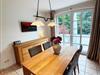 Das großzügige Wohnzimmer im Erdgeschoss lädt zum Verweilen ein. Es ist mit gemütlichen Sofas und einem modernen Fernseher ausgestattet, sodass Sie entspannte Abende bei einem guten Film oder beim Lesen eines Buches verbringen können. Die großen Fenster im Wohnzimmer bieten einen Blick in den Garten und auf die angrenzenden Terrassen, wodurch der Raum besonders lichtdurchflutet und einladend wirkt.