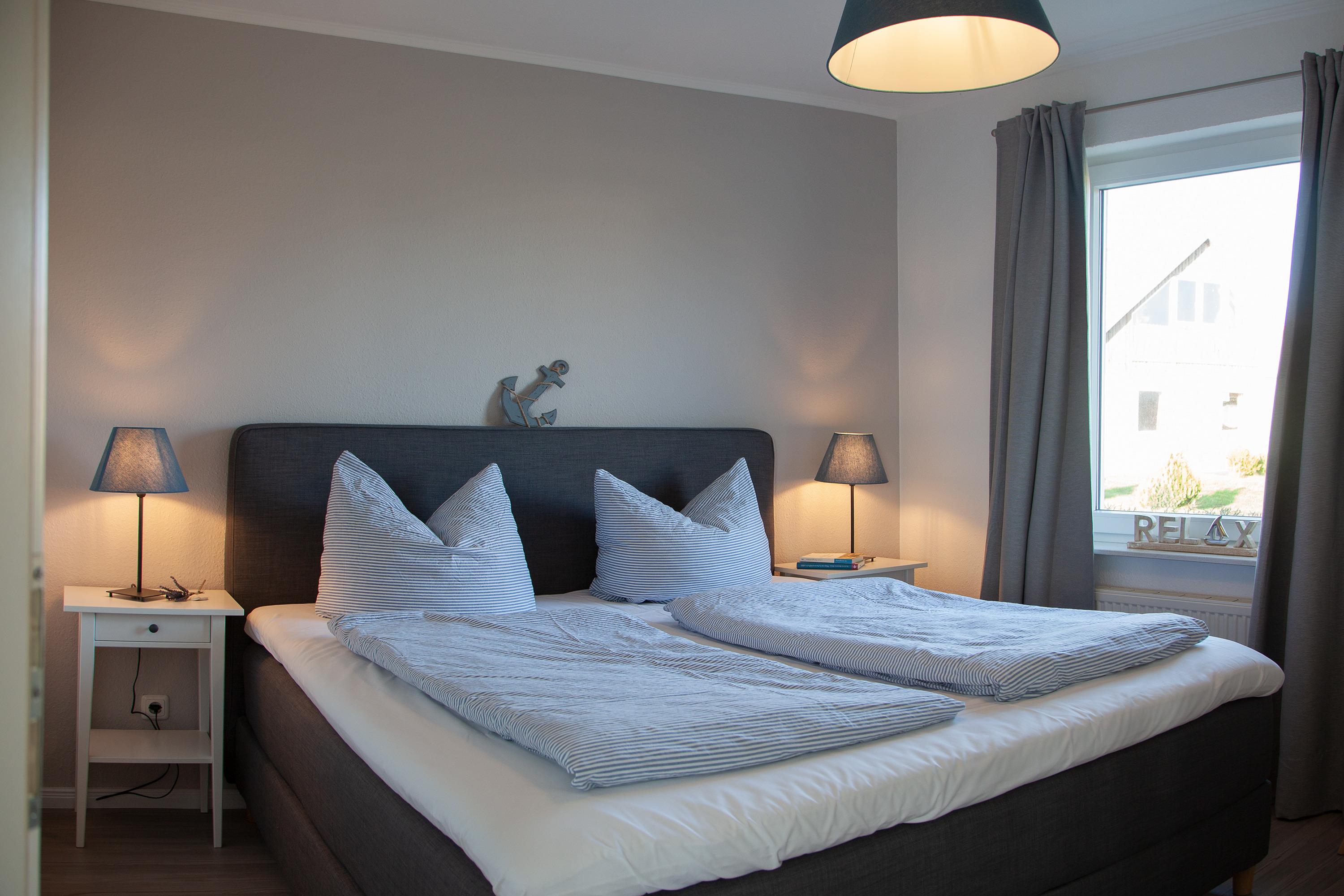 Das Ferienhaus verfügt über vier geschmackvoll eingerichtete Schlafzimmer: ein gemütliches Schlafzimmer mit Doppelbett, ein weiteres mit zwei Einzelbetten und zwei Schlafzimmer mit komfortablen Boxspringbetten (180 x 200 cm und 140 x 200 cm). Zwei moderne Tageslichtbäder, eines mit Dusche und eines mit einer luxuriösen Eckbadewanne, sorgen für zusätzlichen Komfort und Entspannung. Praktische Annehmlichkeiten wie eine Waschmaschine und ein Trockner runden das Gesamtbild ab.