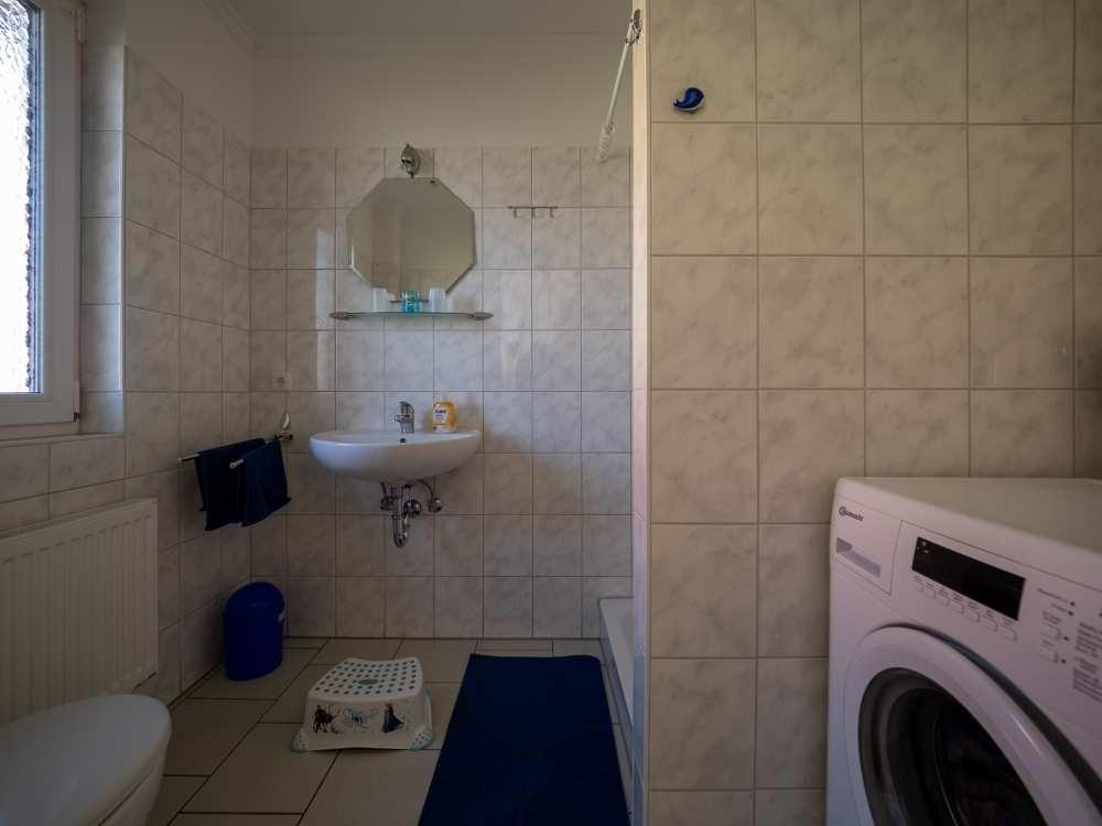 Die voll ausgestattete Einbauküche lässt keine Wünsche offen und lädt dazu ein, kulinarische Genüsse für die ganze Familie zuzubereiten. Moderne Geräte wie Ceranfeld, Backofen, Mikrowelle, Geschirrspülmaschine und eine Kühl-Gefrierkombination stehen Ihnen ebenso zur Verfügung wie praktische Küchenhelfer wie Kaffeemaschine, Senseo-Pad-Maschine, Wasserkocher, Handrührgerät, Toaster und Eierkocher. Gemeinsame Mahlzeiten können Sie am großen, ausziehbaren Esstisch im Wohnbereich genießen, der genügend Platz für alle Gäste bietet.