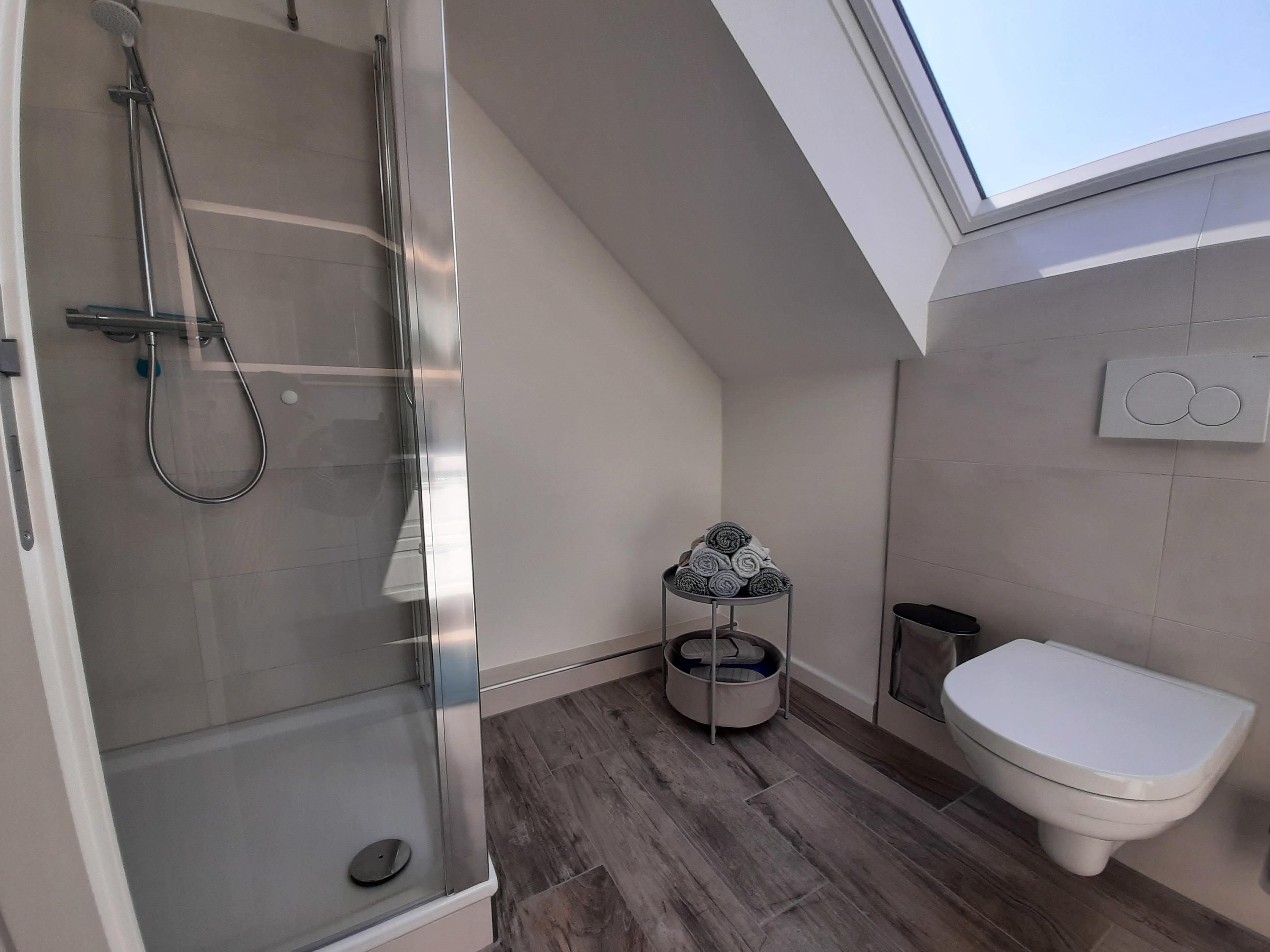 Badeværelse med bruser og badekar