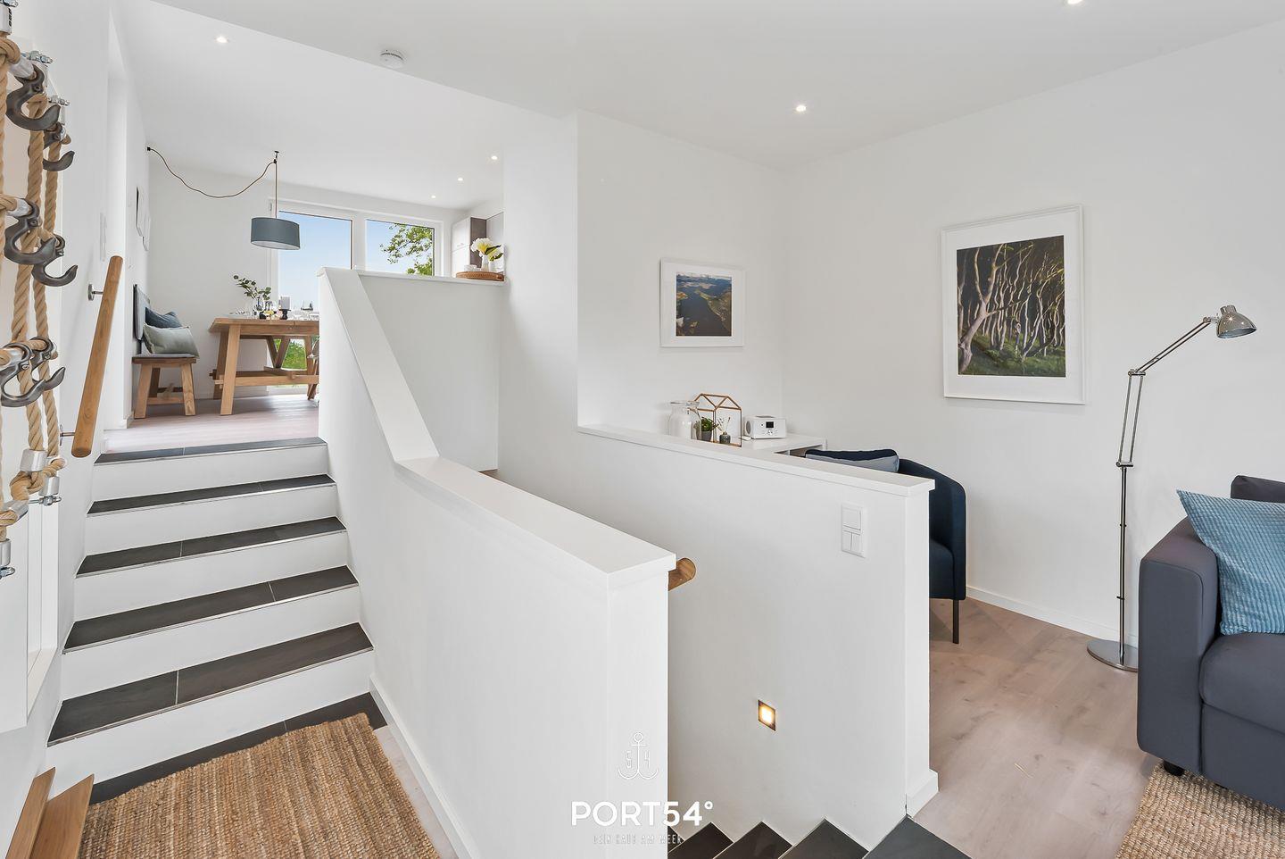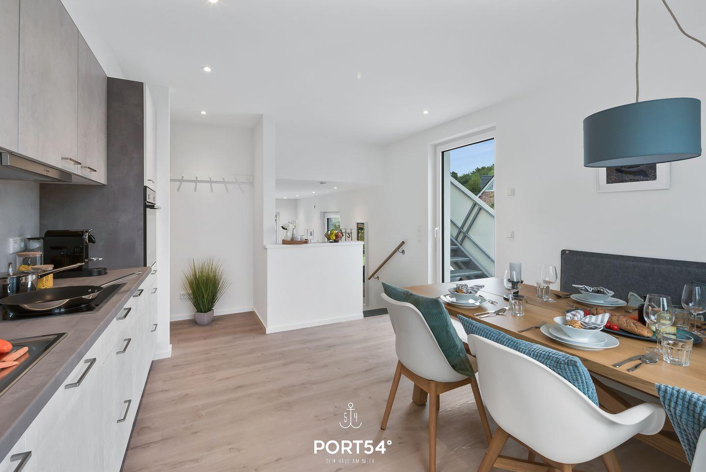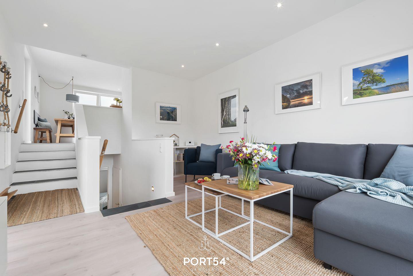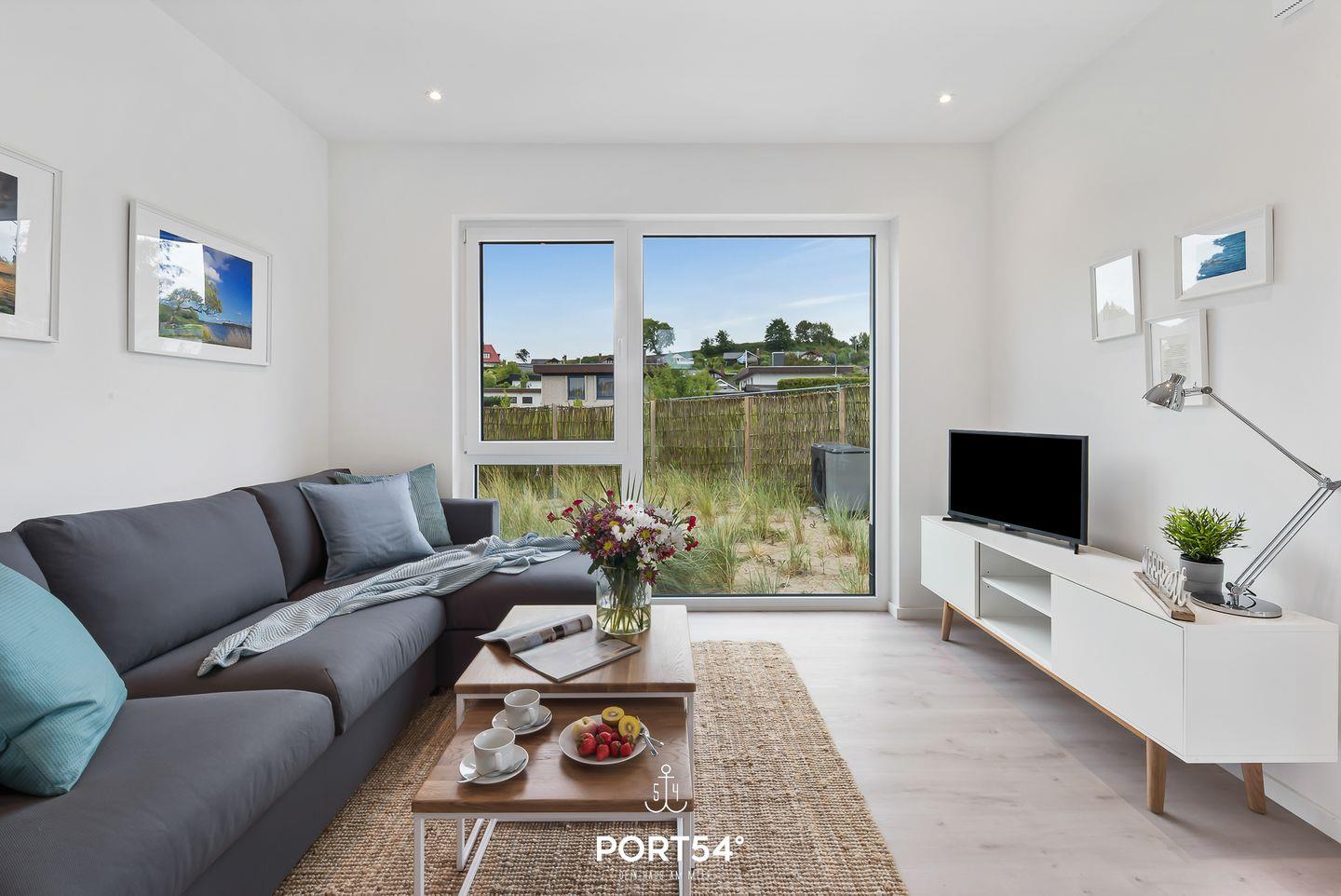 Die modern eingerichtete lichtdurchflutete Ferienhausdoppelhaushälfte "Marsvin" mit 85m² Wohnfläche befindet sich in Bockholm am Rand der Glücksburger Halbinsel Holnis. Bis zum Naturstrand sind es nur 100m. Die geräumige Wohnküche ist komplett ausgestattet, sodass man dort gut gemeinsam am Induktionsherd kochen oder einen Kaffee aus der Siebdruckkanne oder der Nespresso-Maschine genießen kann. Das Haus verfügt über zwei Schlafzimmer, die sich im Souterrain des Hauses befinden. Ein Schlafzimmer verfügt über ein Doppelbett (160x200cm), das andere über zwei Einzelbetten (je 90cmx200cm). Beide Schlafzimmer haben Plissees zum Verdunkeln der Räume. Zwei weitere Schlafplätze bietet das gemütliche Schlafsofa im Wohnzimmer. Das moderne Bad ist mit einer Dusche ausgestattet. Zum Highlight der Ferienwohnung gehört die 17m² große Dachterrasse mit einem Panoramablick auf die Ostsee. Hier kann man auf den Sonnenliegen relaxen oder abends beim Grillen mit dem Kohle-Tischgrill den Sonnenuntergang genießen. Zwei eigene PKW Stellplätze stehen direkt vor dem Haus zur Verfügung. Eine E-Ladesäule kann ebenfalls genutzt werden. Auch eine Buchung der anderen Haushälfte in Kombination für mehr Mitreisende ist möglich.