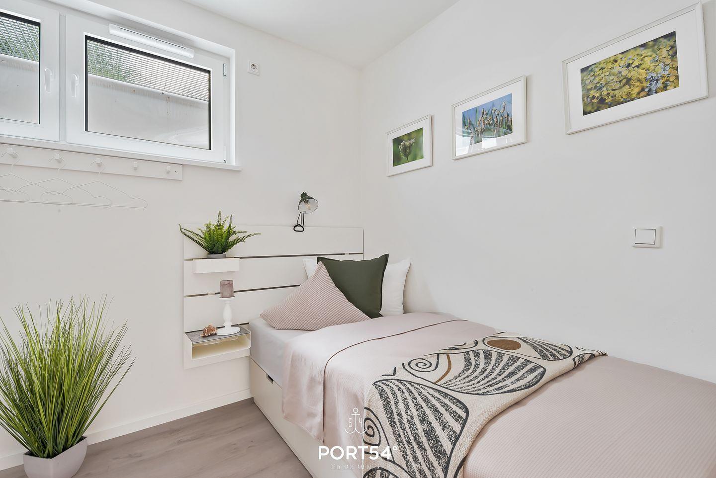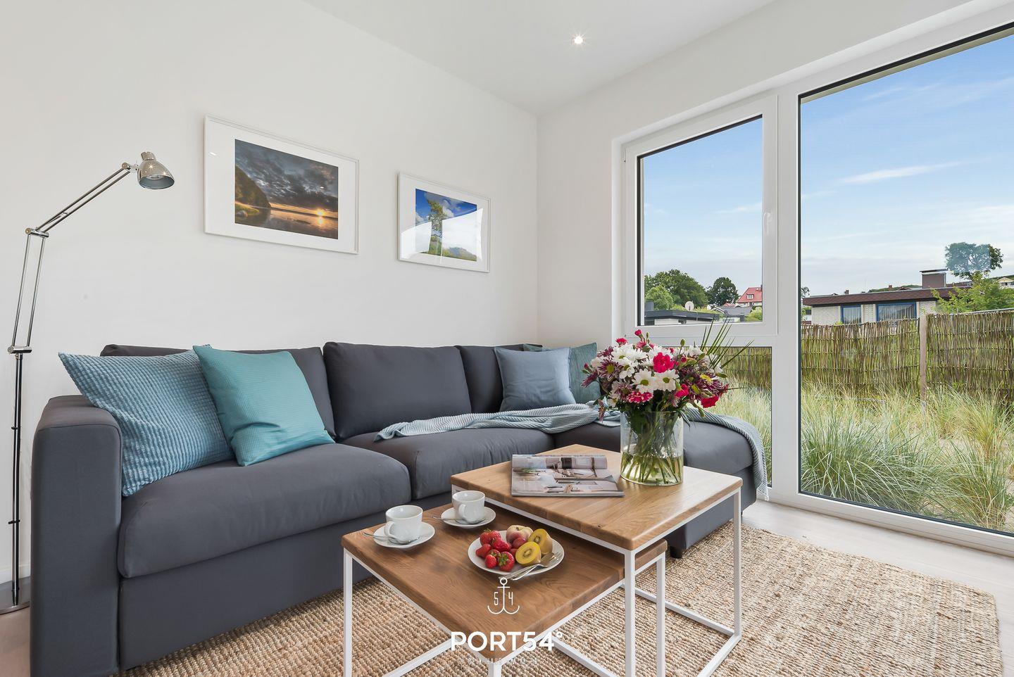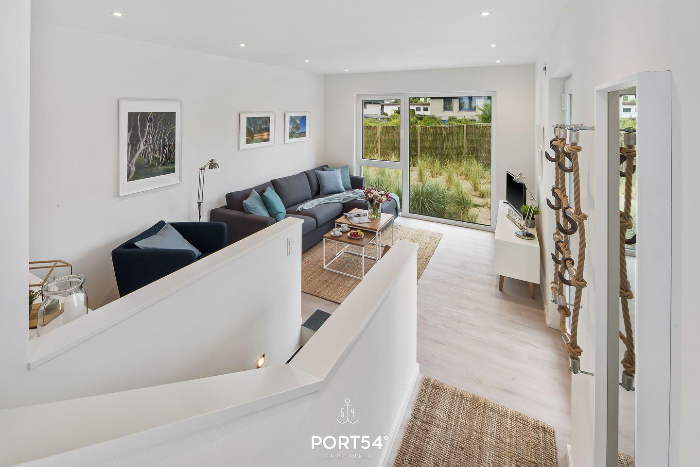Die modern eingerichtete lichtdurchflutete Doppelhaushälfte, mit 85 m², bietet Platz für bis zu 5 Personen. In dem offen gestalteten Wohn- und Essbereich mit einer voll ausgestatteten Küche & einem Schlafsofa, können Sie es sich gemütlich machen. Beide Schlafzimmer befinden sich im Souterrain des Hauses, eingerichtet mit einem Doppelbett & zwei Einzelbetten. Das moderne Badezimmer verfügt über eine ebenerdige Dusche. Das Highlight: Die große Dachterrasse mit einem Panoramablick auf die Ostsee.