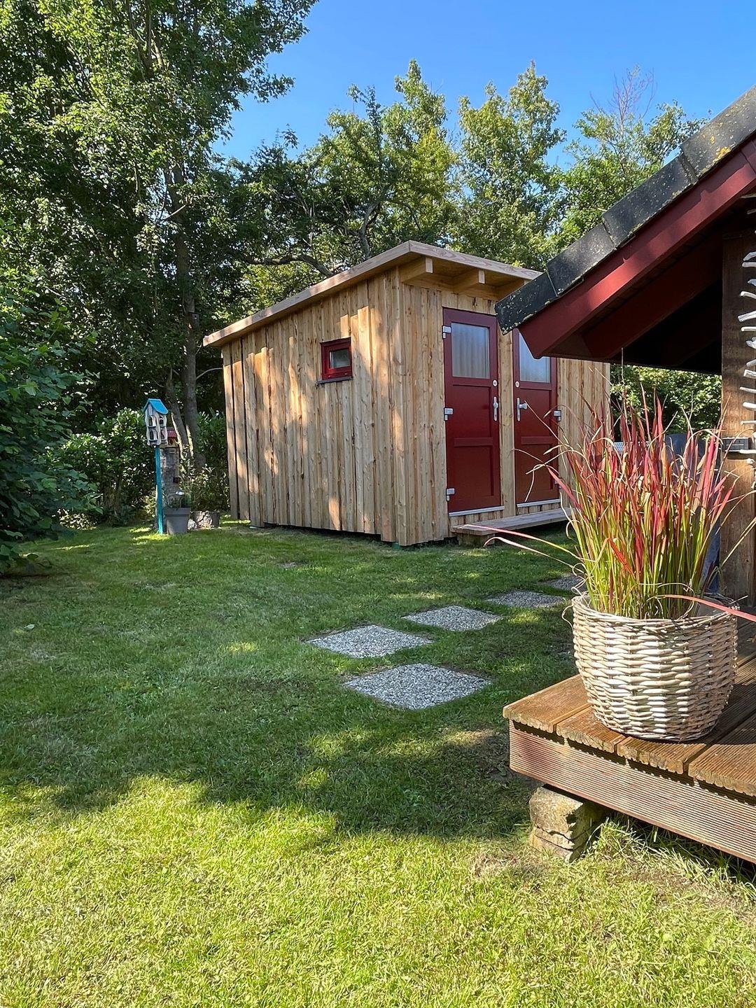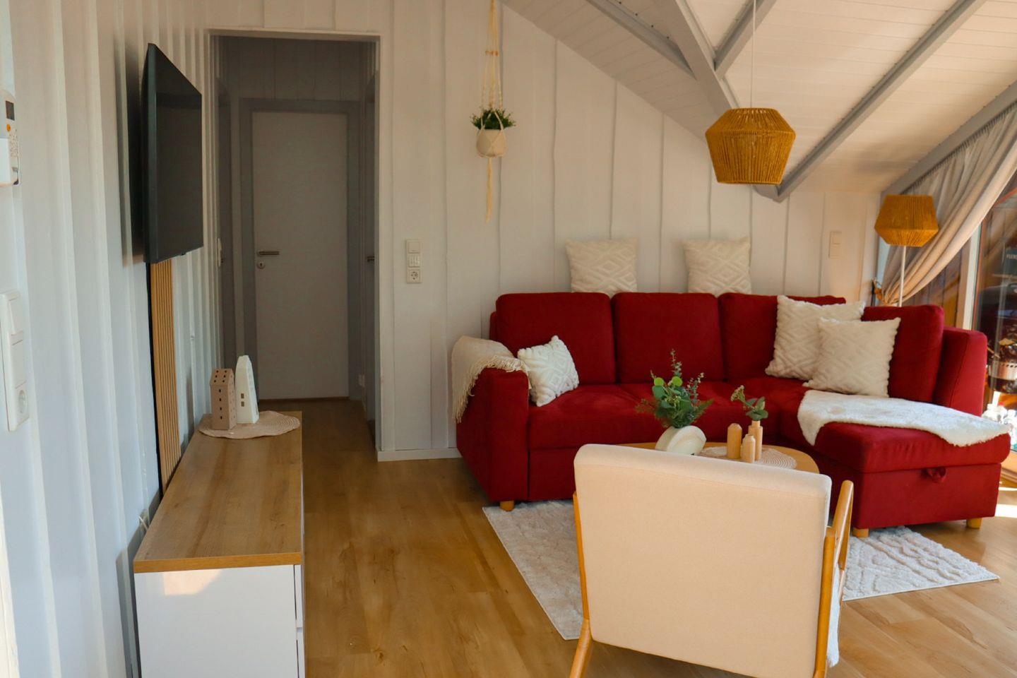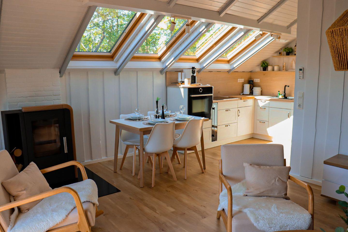 Das Ferienhaus "Kiek in" bietet einen offenen Wohn- und Essbereich, zwei Schlafzimmer, ein Badezimmer und eine große Sonnenterrasse. Das eine der beiden Schlafzimmer bietet ein kleines Doppelbett (140×200cm) und das andere Schlafzimmer verfügt über 2 Einzelbetten (je 80×200cm). Ein weiteres Zimmer bietet ein Hochbett (bis 12 Jahre) sowie einen Schreibtisch. Das Badezimmer bietet eine Dusche. Die möblierte Terrasse lädt zu gemütlichen Sonnenstunden ein. Zwei PKW-Stellplätze sind vorhanden.