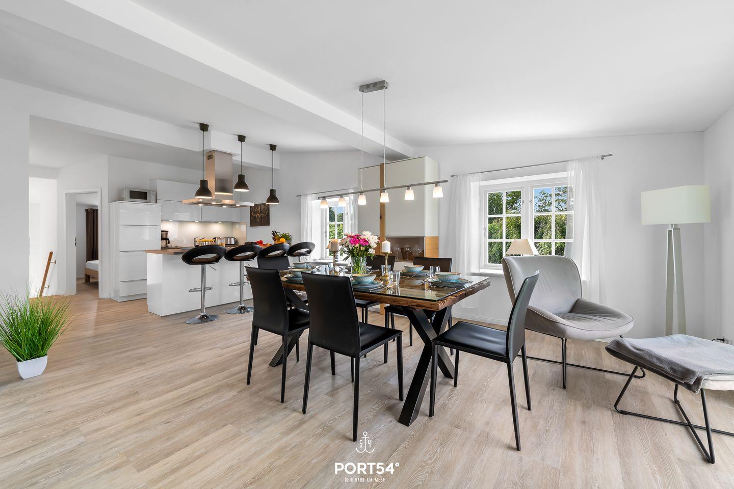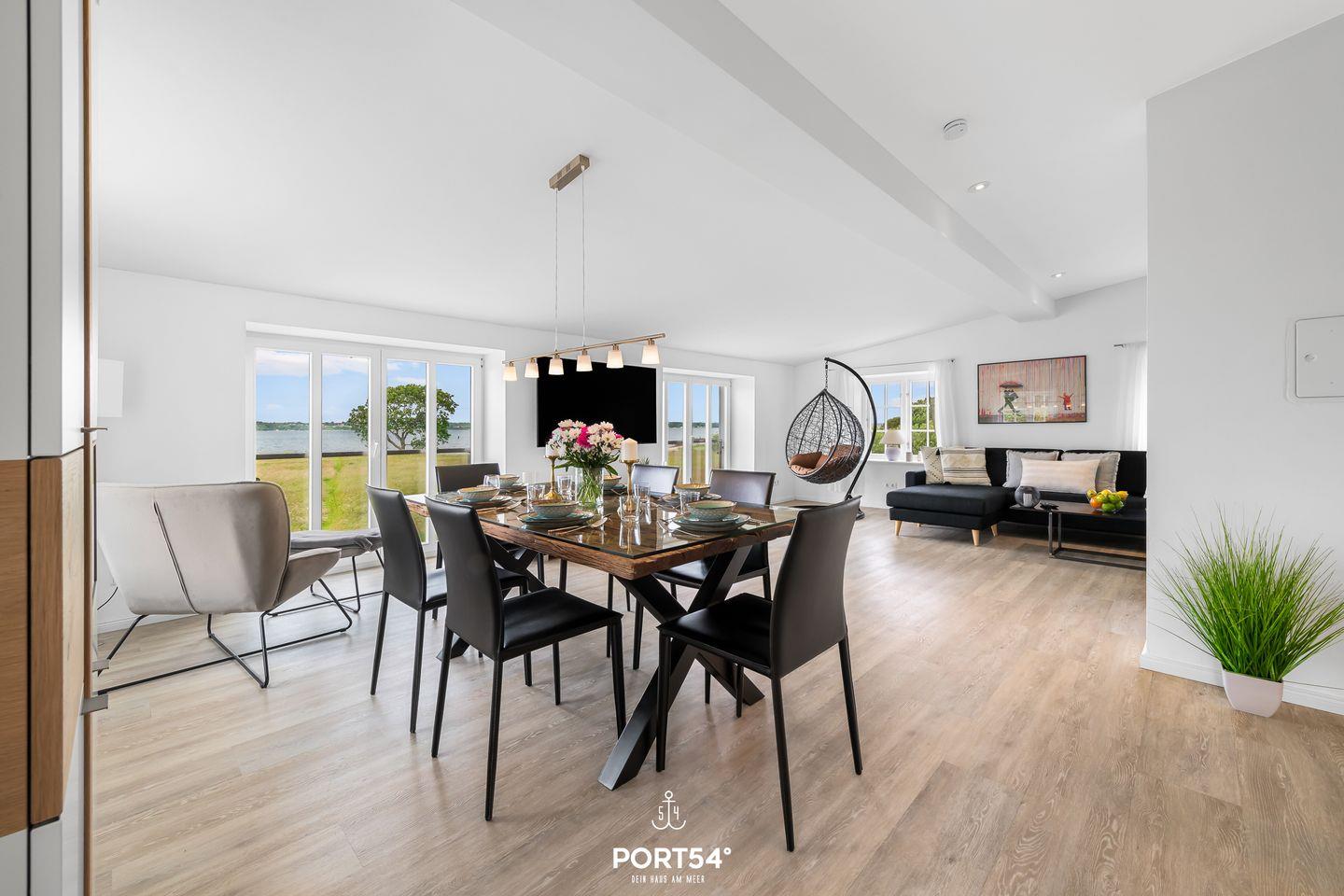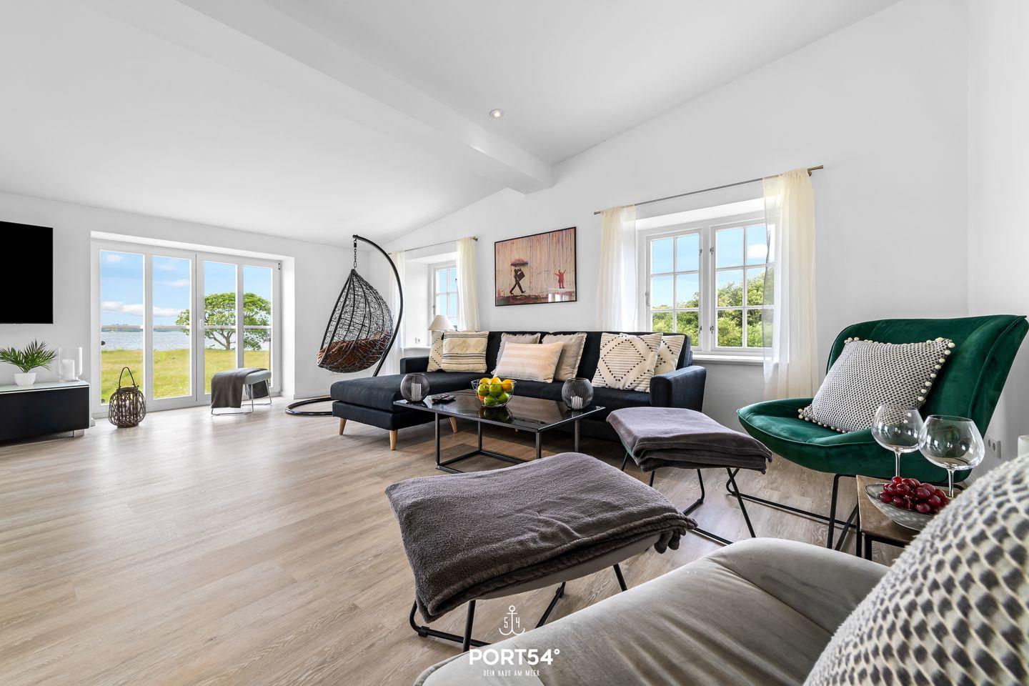 Das hochwertig eingerichtete Ferienhaus Loft an der Ostsee Glücksburg bietet mit seiner einzigartigen Lage direkt an der Flensburger Innenförde auf 120m² neben zwei Schlafzimmern (mit einem kleinen & einem normalen Doppelbett) und zwei Badezimmern, ein Gartenzimmer (mit Schlafcouch), sowie mehrere möblierte Terrassen.