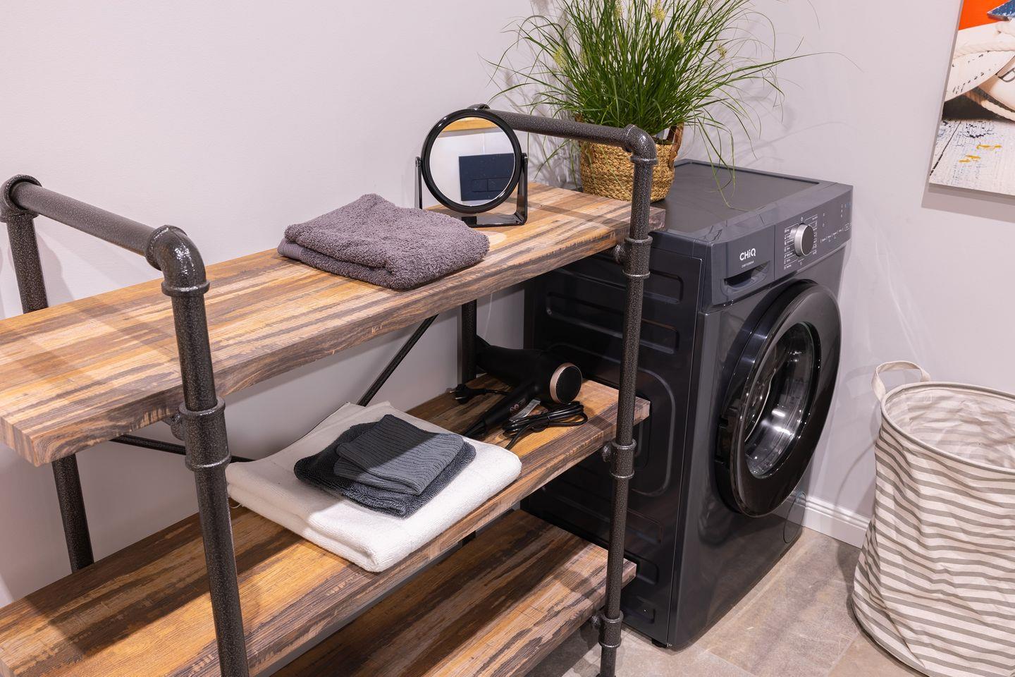 Für längere Aufenthalte stehen Dir außerdem eine Waschmaschine, ein Wäscheständer sowie ein Bügeleisen und ein Bügelbrett zur Verfügung.