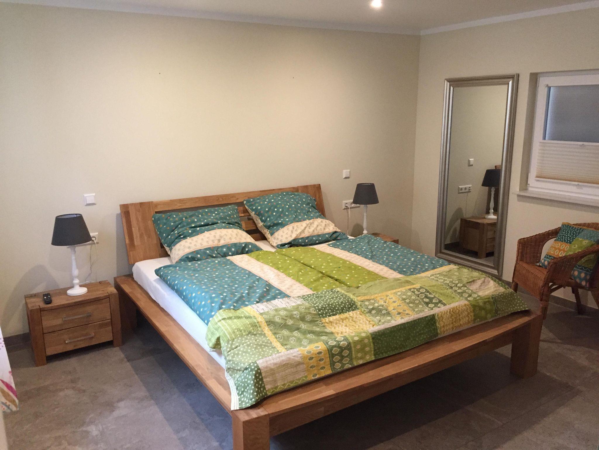 Das große Schlafzimmer verfügt über ein Doppelbett, einen Kleiderschrank sowie einen Flachbildfernseher. Die Betten sind bei Ihrer Ankunft selbstverständlich frisch bezogen.