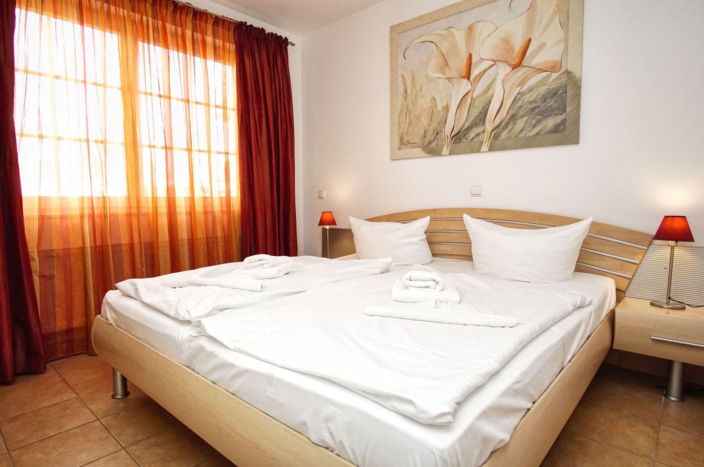 SCHLAFEN // ein Schlafzimmer mit bequemem Doppelbett, bequeme Schlafcouch im Wohnbereich (s.o.) ++