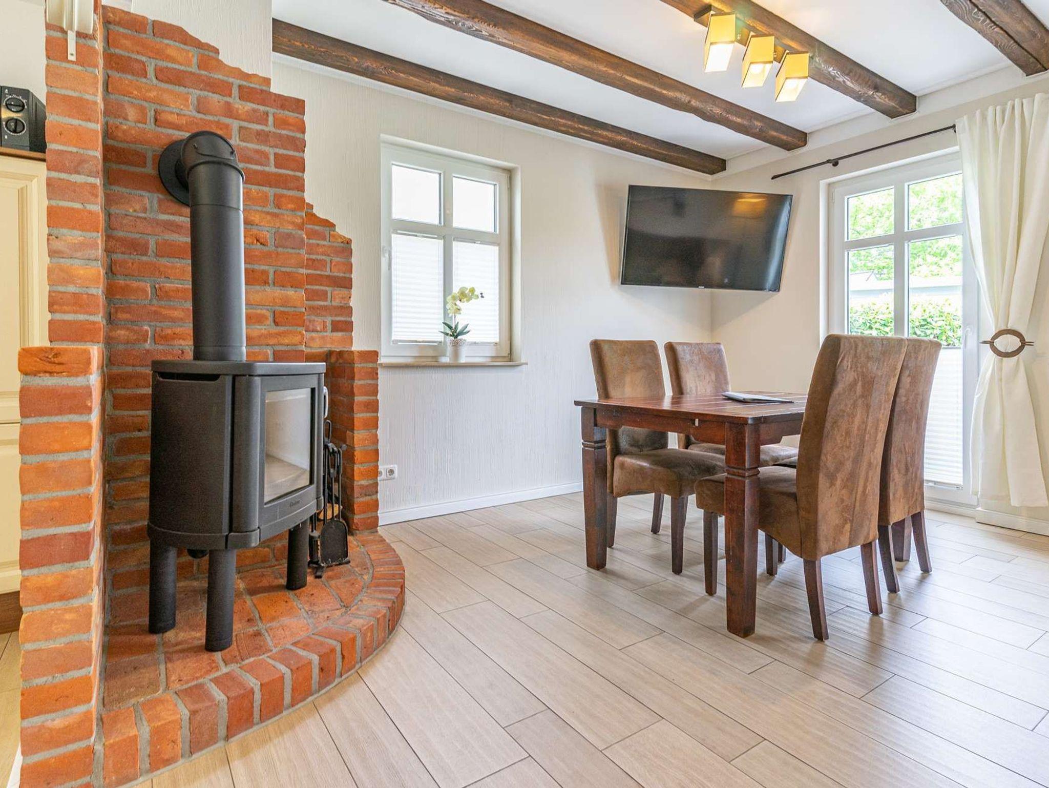 Der großzügige Essplatz befindet sich gleich nebenan im Wohnraum. Hier können Sie auch von einer bequemen Sitzgruppe dem Knistern des Kamins lauschen oder einen gemütlichen Fernsehabend verbringen. Der Full-HD Fernseher sowie ein Blue-Ray Player, ist mit nur einer Fernbedienung sehr einfach zu handhaben. So wird Ihr neues Zuhause zu einem wahren Ferien-Erlebnis.