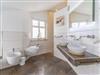 Das Badezimmer im Obergeschoss, mit bodengleicher Dusche, Badewanne, Bidet und Doppelwaschplatz garantieren höchsten Badespaß – noch dazu bei leiser Musik oder den aktuellen Nachrichten. Selbst aus der Badewanne können Sie Ihre Lieblingssendung im TV schauen. Im Erdgeschoss befindet sich noch ein Gäste-WC.
