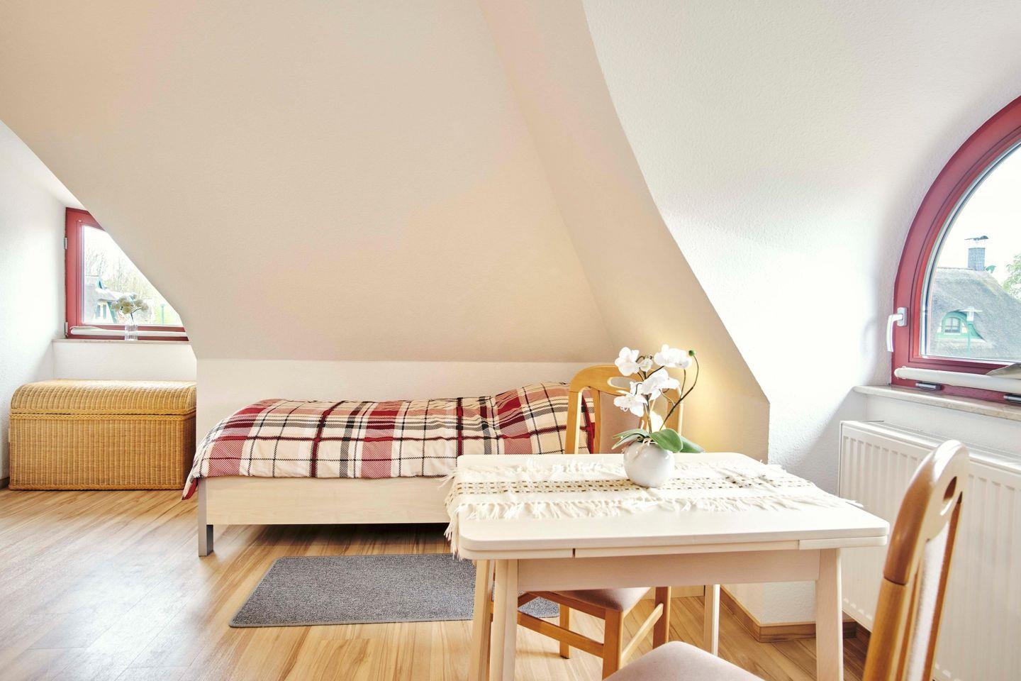 Dieses 90 m² große, reetgedeckte Ferienhaus "Seemöwe" für bis zu 4 Personen befindet sich in dem kleinen Ort Glowe auf der herrlichen Sonneninsel Rügen.