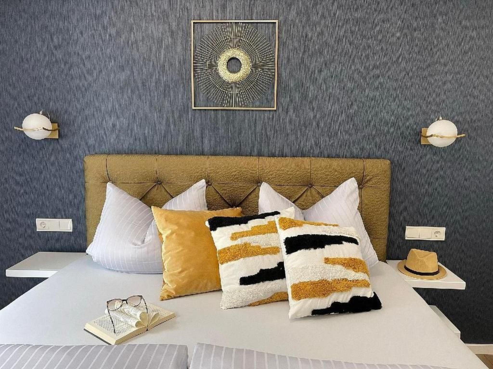 Outside: Balcony; Total car parking spaces: 1;General: 2nd double bed; Bathroom: 2; Year built: 2021; Floor: 1; Detached building; Total number of floors: 1; Plot size: 385 m²; Bedrooms;Living: Iron; CD player; Radio; Satellite TV;Bath/WC: Shower; Sauna nearby; Toilet;Cooking: Oven; Freezer; Induction cooker; Coffee machine; Coffee pod machine; Refrigerator; Microwave; Dishwasher; Toaster; Kettle;Other: View; Underfloor heating; Barbecue not permitted; No youth groups; High chair; Air conditioning; Luxury property; Games for adults; Games for children; Vacuum cleaner; Tumble dryer; Washing machine; W-Lan complete package;Distances (as the crow flies, approx.): Distance to cafés/ restaurants: 50 m; Distance to harbour: 0.62 km; Distance to grocery store: 0.30 km; Distance to sandy beach: 50 m; Distance to beach: 50 m; Distance to train station: 10.00 km; Distance to airport: 140.00 km; Distance to dog beach: 0.83 km; Distance to sea: 70 m; Distance to water: 70 m; Nearest village: 0.30 km;No youth groups.