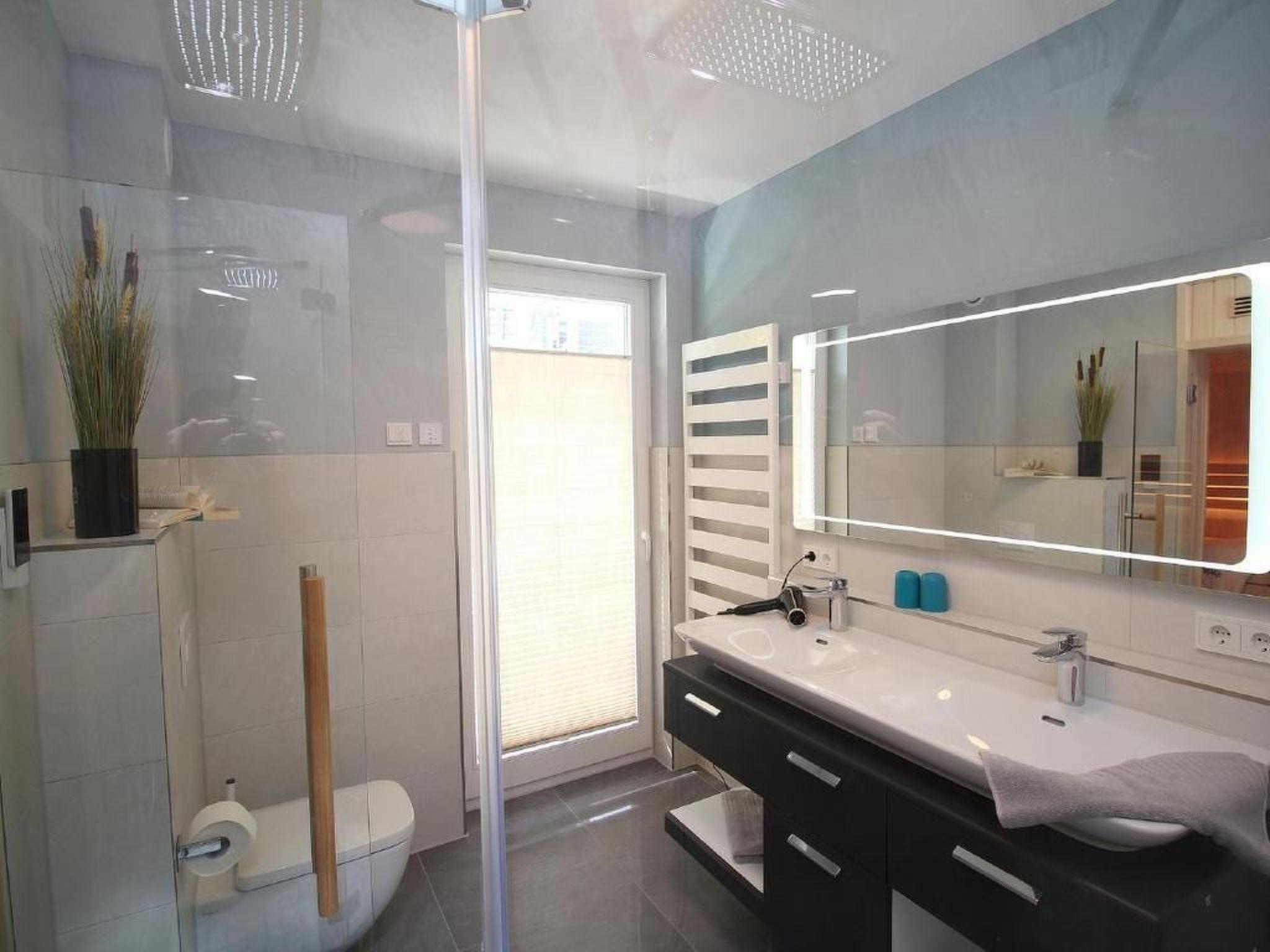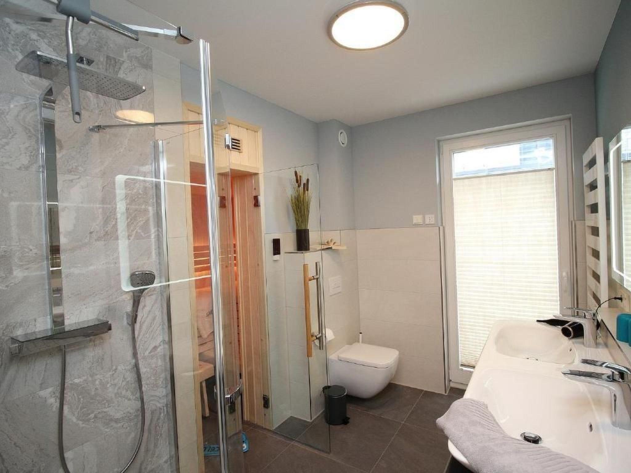 Facilities that leave nothing to be desired, such as: 2 car parking spaces, one of which is equipped with an electric charging station, a washer-dryer, TV in all rooms, air conditioning, active house ventilation, interior and exterior window shading with electric blinds, a high-quality modern kitchen, as well as a sauna contribute to an unforgettable holiday. But the most important thing is the view of the Baltic Sea and the short distance of approx. 50 metres to the wide, fine sandy Baltic Sea beach.