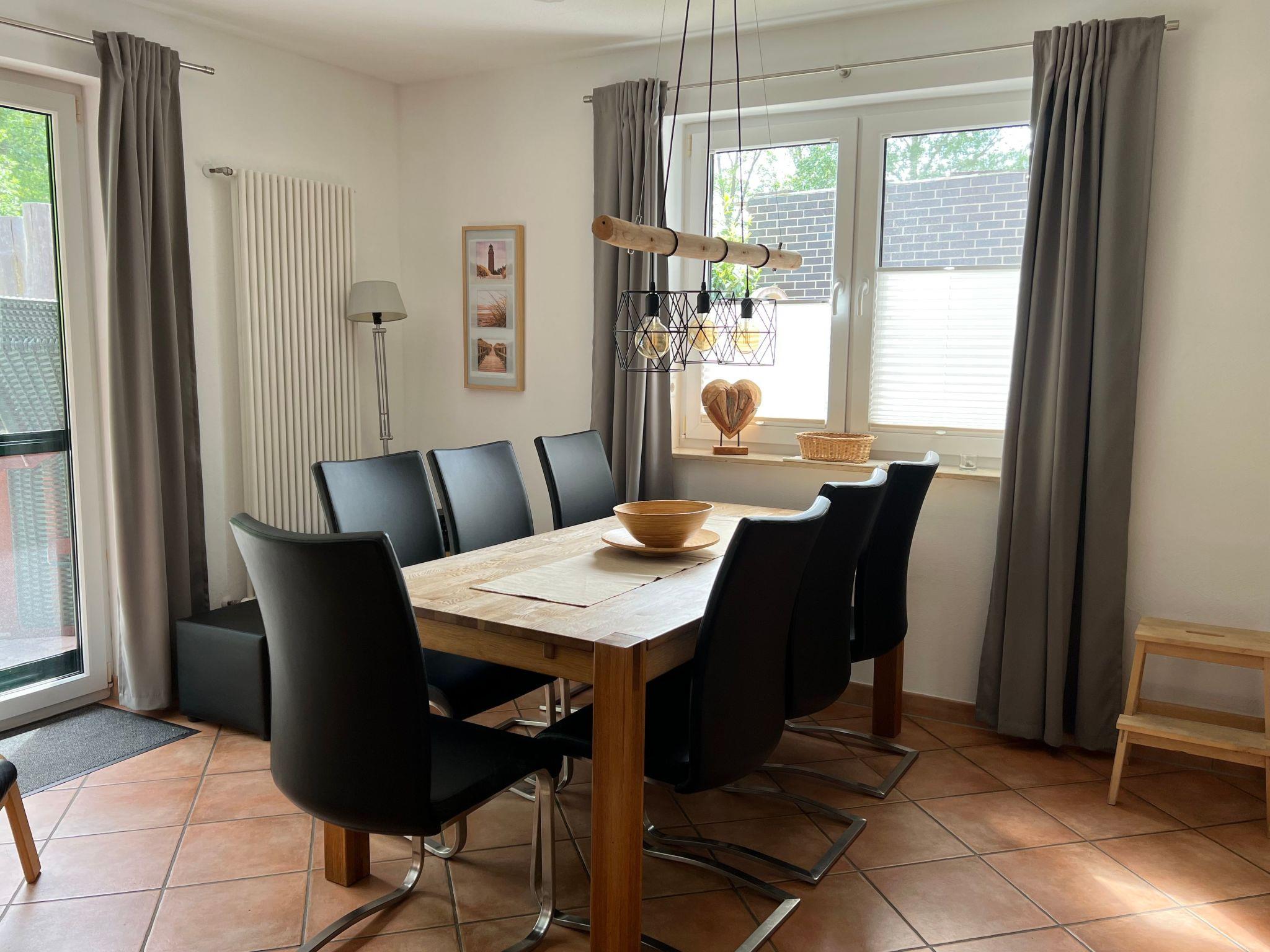 The house is divided into two self-contained apartments on the ground floor and upper floor, or it is possible to rent the whole house. The holiday apartment on the ground floor of the detached house is ideal for a holiday on Rügen and can accommodate up to 6 people, measuring around 80m2 and comprising two bedrooms, a bathroom, a living and dining room, a kitchen, a utility room with a washing machine and dryer (coin-operated).