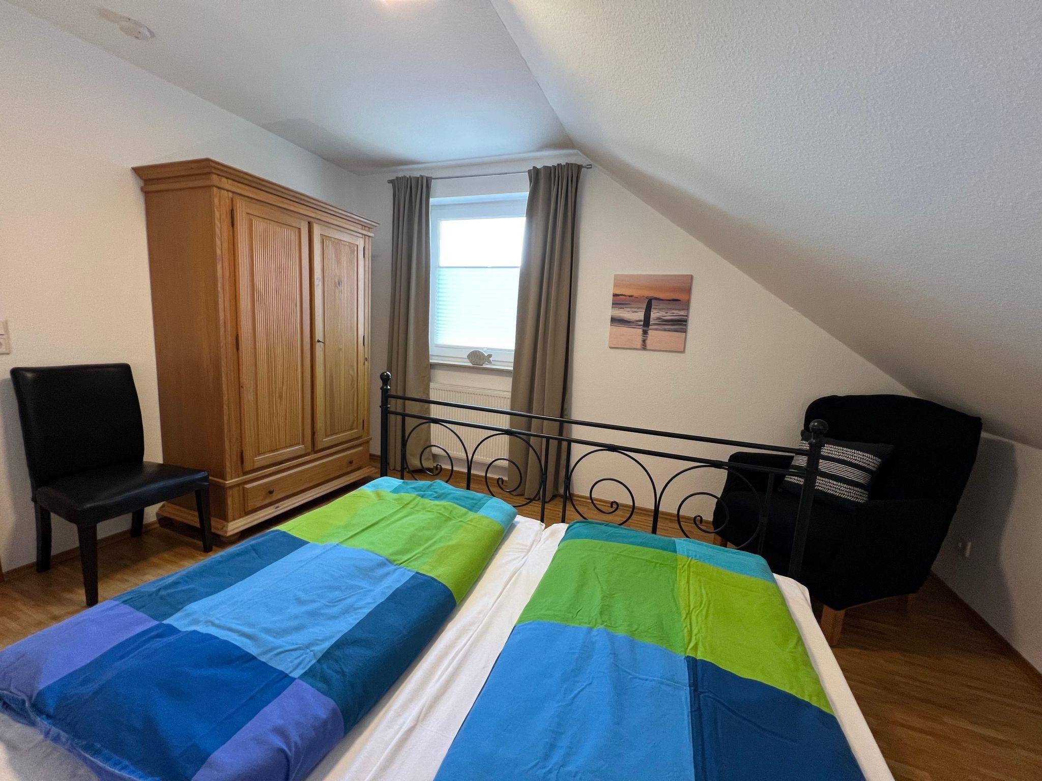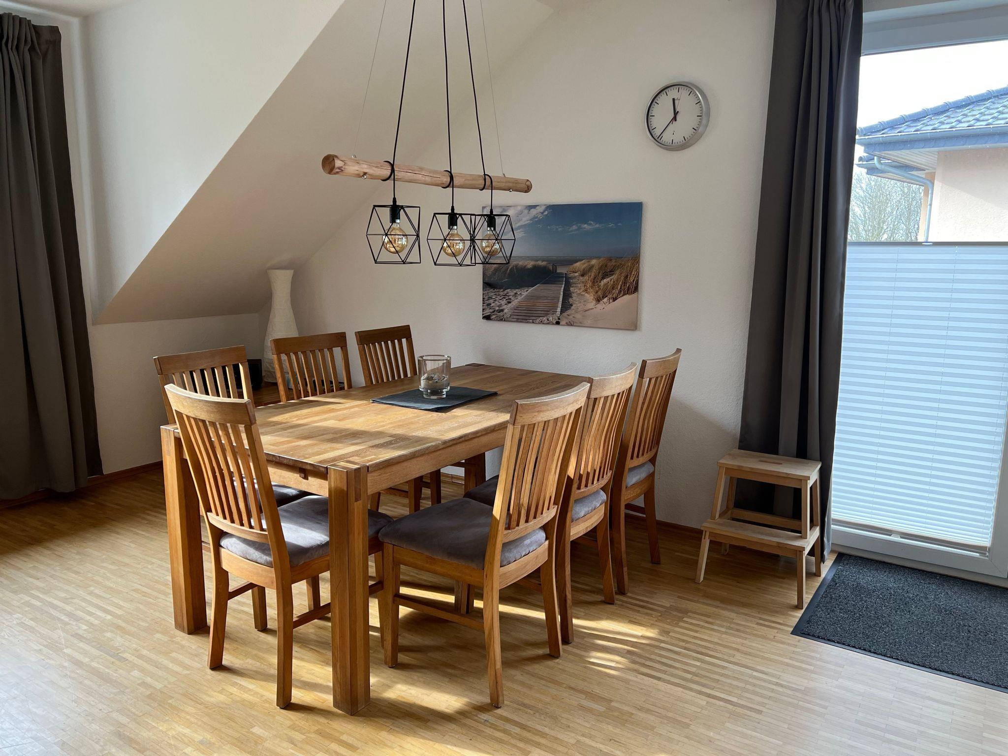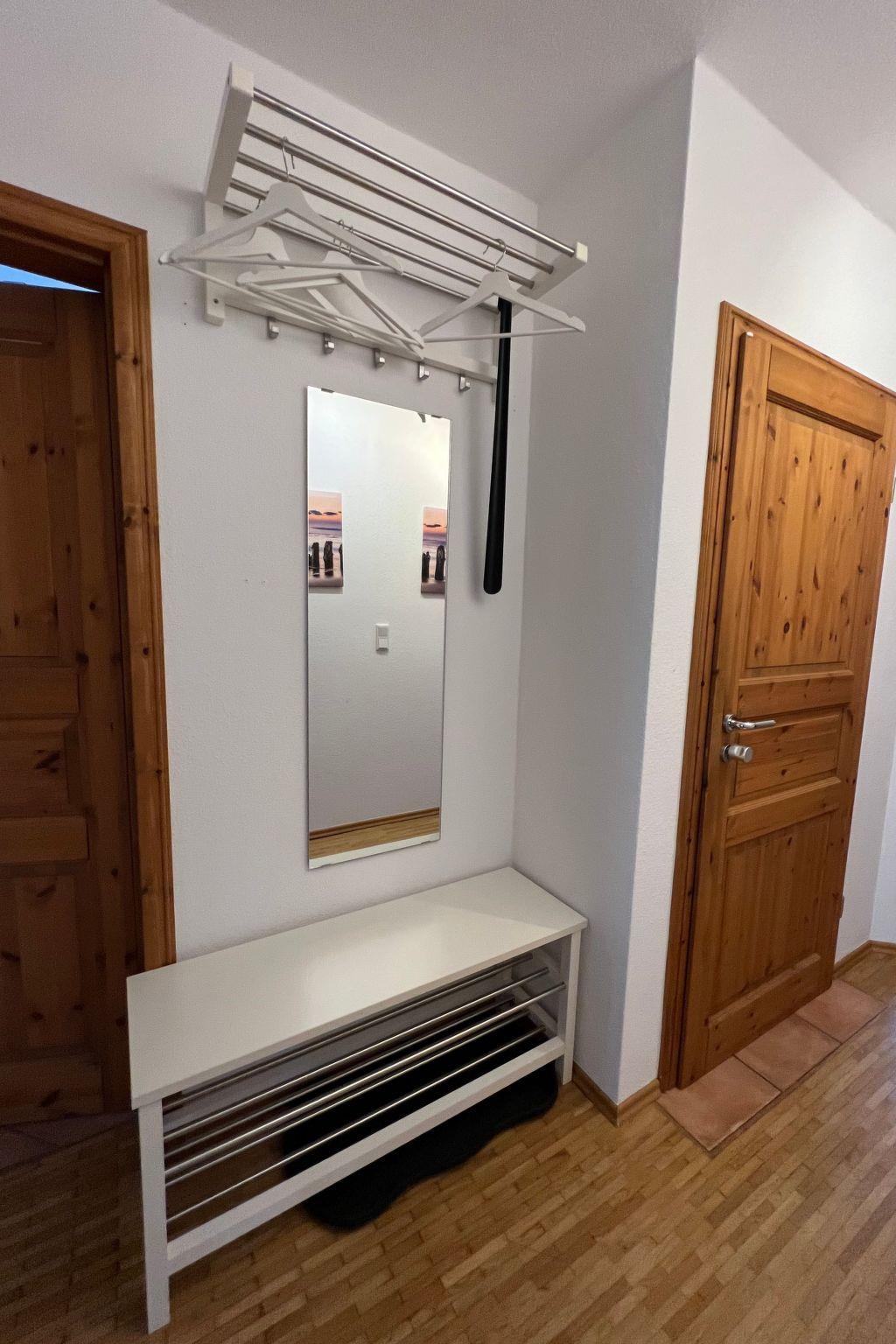 The house is divided into two self-contained apartments on the ground floor and upper floor, or it is possible to rent the whole house. The apartment on the upper floor of the detached house is ideal for a holiday on Rügen and can accommodate up to 6 people. It measures around 80m², comprising two bedrooms, a bathroom, a living and dining room, a kitchen, a utility room with a washing machine and dryer (coin-operated).