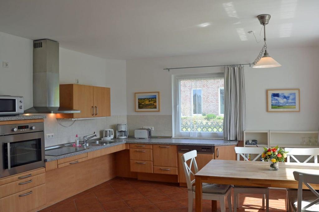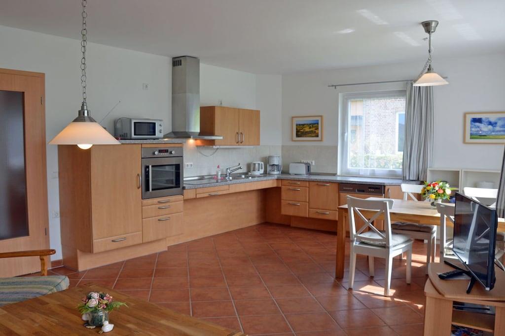 Erholungsort Glowe, Parterre, sehr ruhige Lage, ca. 500 m zum Sandstrand (Ostsee), ca. 1 km zum Bodden, großzügiger Wohn- Essbereich mit Fußbodenheizung, Couch mit Sessel, TV/ Sat (Flatscreen), WLAN vorhanden, Radio/ CD, offene komplett ausgestattete rollstuhlgeeignete Einbauküche mit 4- Plattenherd (Ceranfeld), Backofen, Kühlschrank mit kleinem Gefrierfach, Mikrowelle, Geschirrspüler und diversen Elektrogeräten, 1. Schlafzimmer mit Doppelbett und Kleiderschrank, 2. Schlafzimmer mit 2 Einzelbetten und Kleiderschrank, rollstuhlgerechtes Bad mit Dusche und WC, gemeinschaftlich genutzter Wirtschaftsraum mit Waschmaschine, Wäschetrockner, große Gefriertruhe, Terrasse mit Gartenmöbeln, Grillmöglichkeit besteht Nur 8 Gehminuten zum Ostseesandstrand” rollstuhlgerechte Wohnung (barrierefrei), Nichtraucherwohnung, Waschmaschine und Waschtrockner ohne Gebühr, Grundstück ca. 500 qm, 1 PKW- Stellplatz am Haus im Carport, Haustiere nicht erwünscht, diverse Einkaufsmöglichkeiten mit Bäcker und Restaurants im Ort vorhanden, optimale Rad- und Wandermöglichkeiten Saison-Preise
