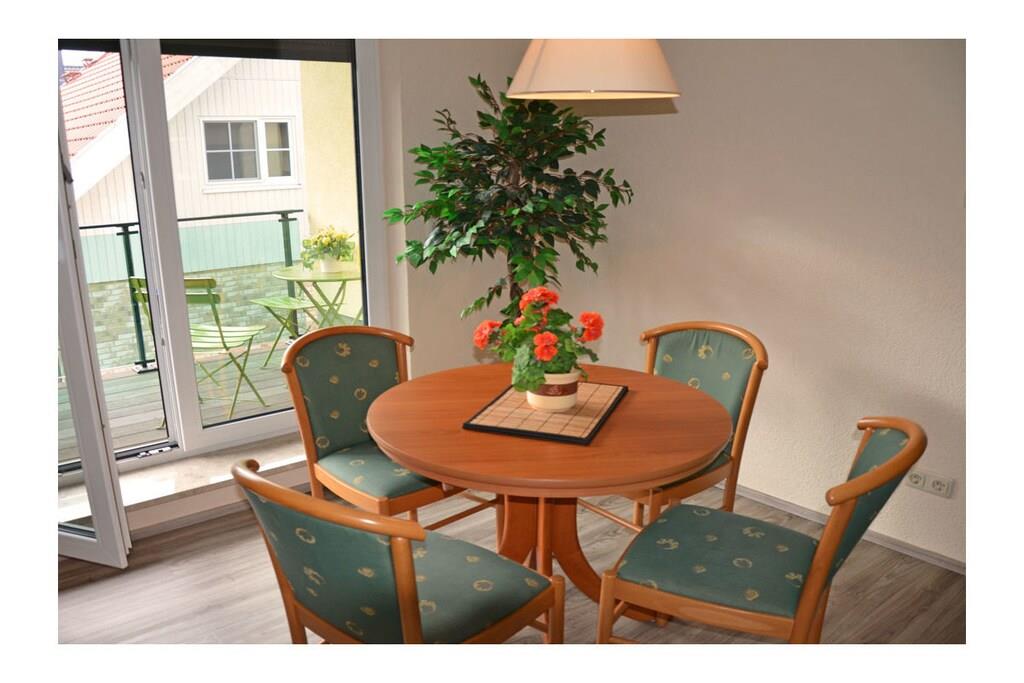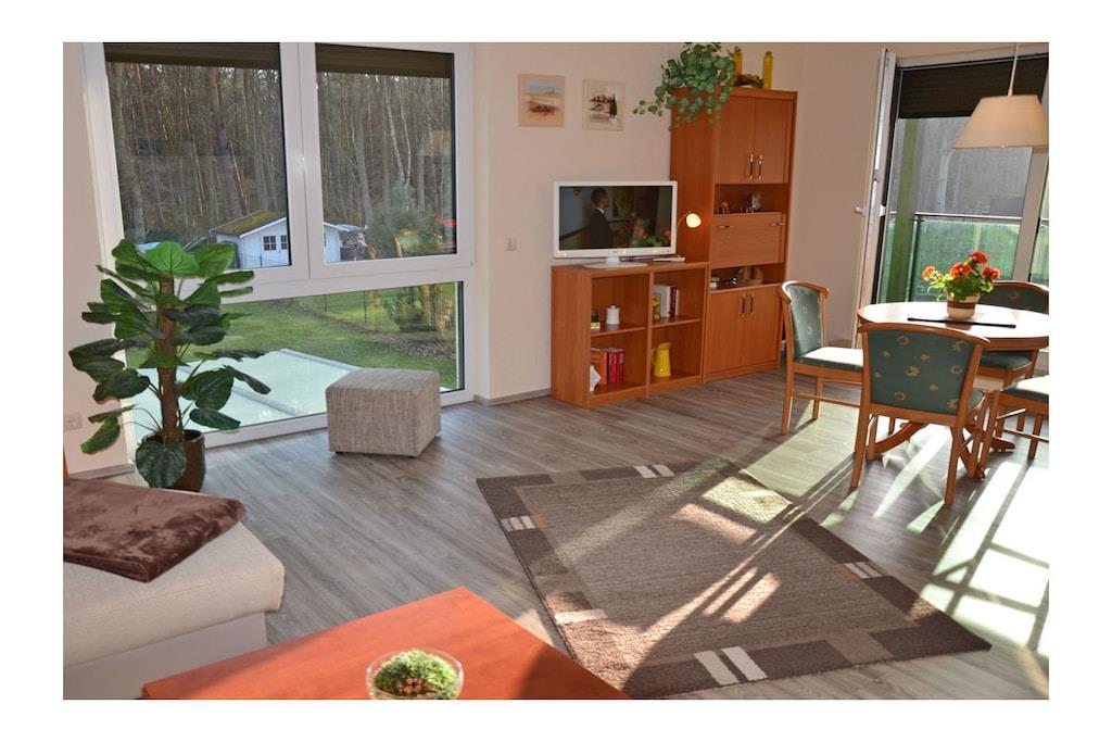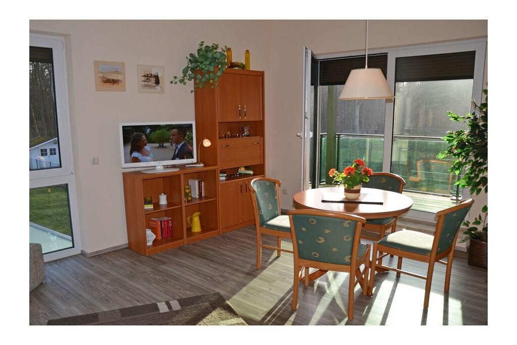 Großzügiger Wohn- Essbereich mit Fußbodenheizung, gemütliche Couch, Klappmatratze vorhanden (für 3. Person), TV/ Sat (Flatscreen), Radio, WLAN, Bücher und Gesellschaftsspiele für gemütliche Abende, offene komplett ausgestattete Einbauküche mit 2- Plattenherd (Ceranfeld), Kühlschrank mit kleinem Gefrierfach, Mikrowelle und diversen Elektrogeräten, Schlafzimmer mit Doppelbett (2 Matratzen je 90 x 200) und großem Kleiderschrank, modernes Bad mit Dusche und WC, Balkon (Süd- und Westrichtung) mit Gartenmöbeln und Elektrogrill Besonderes: “Erholung – Strand – Natur“ Die Ferienwohnung „Seelilie 1“ ist modern und liebevoll eingerichtet. Der feinsandige Badestrand (Ostsee) ist nur 800 m entfernt. Der sonnige Balkon (Süd- Westrichtung) lädt zum Verweilen ein. Das Ferienquartier ist eine Nichtraucherwohnung. Internet vorhanden und kostenfrei nutzbar. Alle Räume sind mit Fußbodenheizung ausgestattet. Der PKW-Stellplatz befindet sich direkt am Objekt. Einkaufsmöglichkeiten, Becker und Restaurants sind in unmittelbarer Nähe. Es gibt optimale Rad- und Wandermöglichkeiten um die Insel zu erkunden. Haustiere sind nicht erwünscht. Keine Vermietung von November bis einschl. Februar.