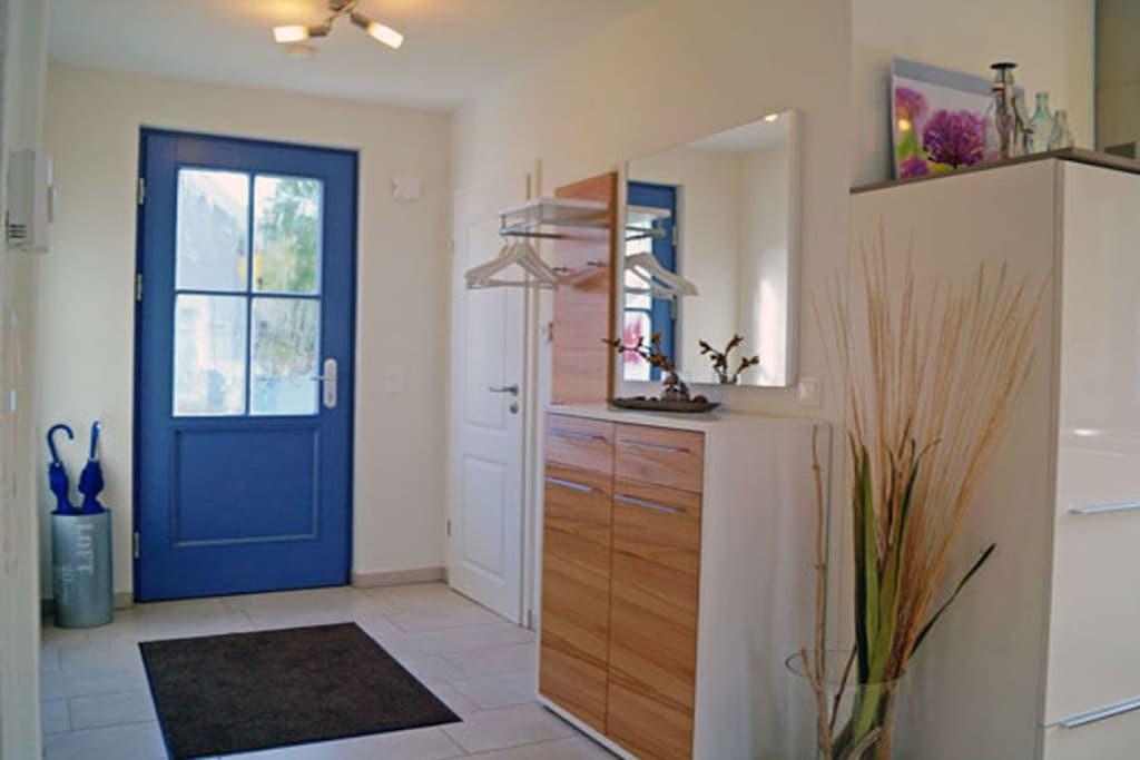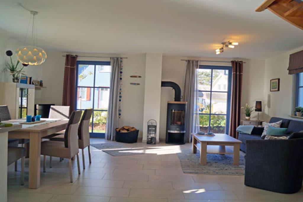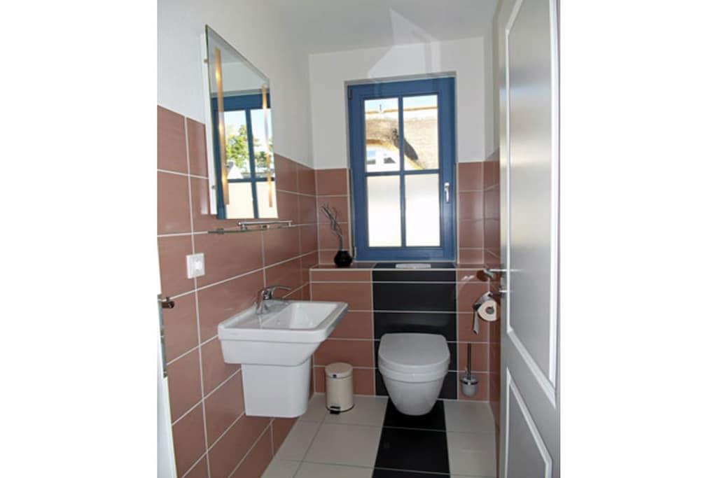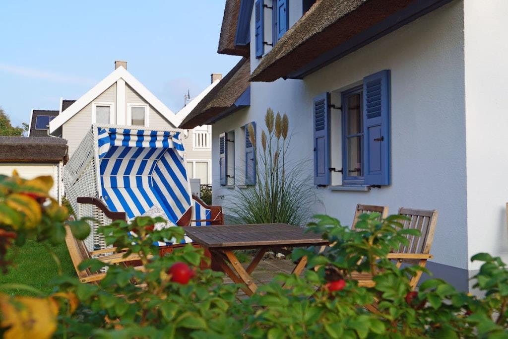 Erholungsort Glowe, über 2 Etagen, ruhige Lage, ca. 400 m zum Sandstrand (Ostsee), ca. 1 km zum Bodden Erdgeschoss: großzügiger Wohn- Essbereich mit Fußbodenheizung und Kamin, gemütliche vollwärtige Ausziehcouch (180x200), TV/ Sat (Flatscreen) mit USB, Radio/CD (Hifi-Anlage), offene komplett ausgestattete Einbauküche mit 4- Plattenherd (Ceranfeld), Backofen, Kühlschrank mit Gefrierfach, Mikrowelle, Geschirrspüler und diversen Elektrogeräten, Gästebad mit WC, Saunabereich mit bodenebene Dusche Obergeschoss: 1. Schlafzimmer mit komfortablen Boxspringbett (durchgehende Matratze 180 x 200) und TV mit DVD-Player, 2. Schlafzimmer mit 2 Einzelbetten, hochwertiges Bad mit Badewanne, bodenebene Dusche und WC, Terrasse mit Gartenmöbeln, Sonnenschirm, Grill und Strandkorb Ein perfekter Urlaubstraum im Reethaus Am Dünenwald” Reetdachgedecktes Haus, Grundstück ca. 400 qm, Internet (WLAN) kostenfrei vorhanden, Wirtschaftraum mit Waschmaschine vorhanden, reetdachgedecktes Gartenhaus zum unterstellen von Fahrrädern (Lademöglichkeit für E-Bikes vorhanden), Liegewiese, 1 PKW- Stellplatz am Haus, Einkaufsmöglichkeiten, Kinderspielplatz, Bäcker und Restaurant in unmittelbarer Nähe, optimale Rad- und Wandermöglichkeiten, Haustiere nach Absprache (nur 1 Hund mit maximaler Schulterhöhe von 50cm ist erlaubt! /Gebühr Euro 5,-/ pro Nacht)