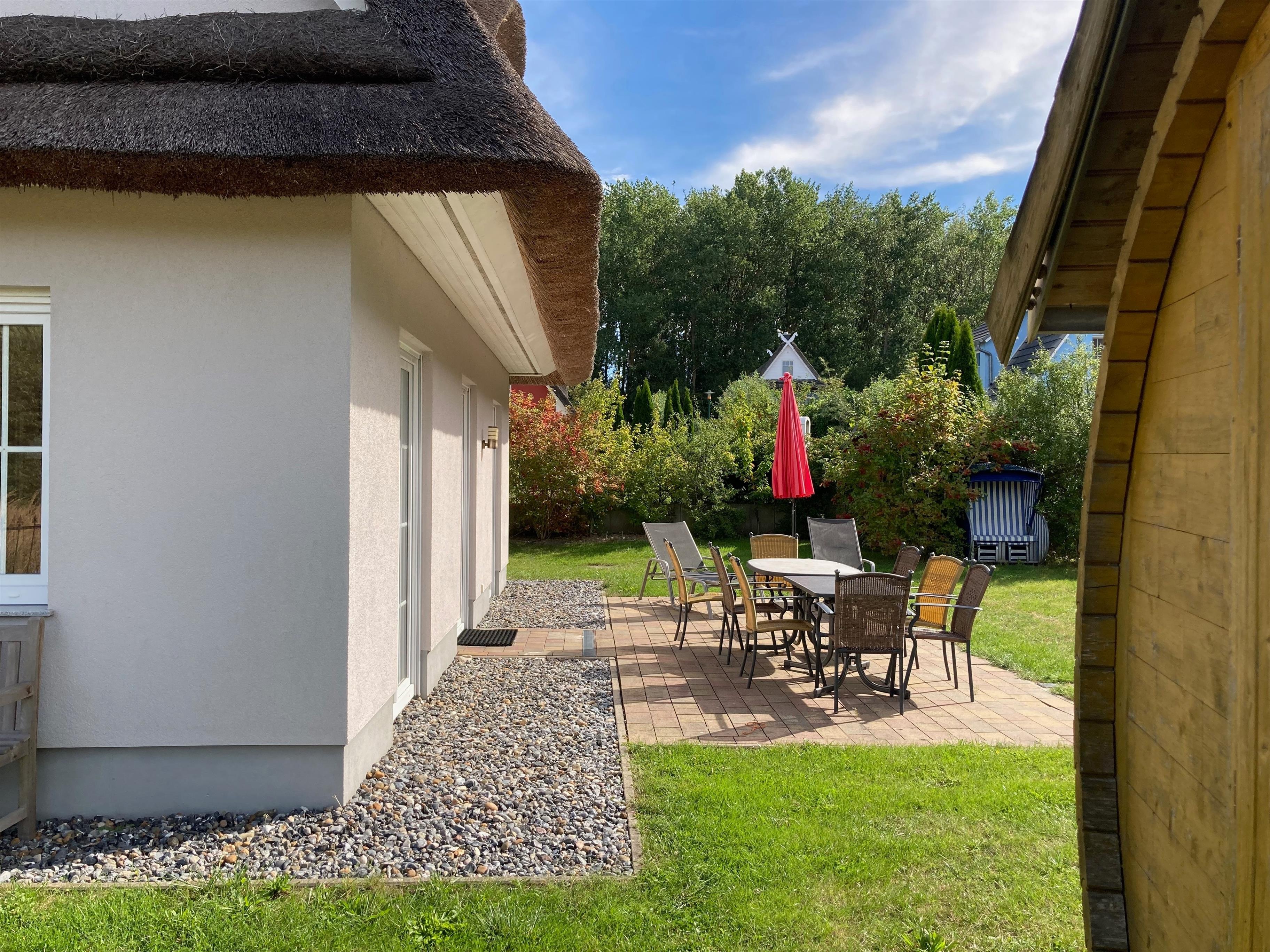 Dieses zeitgemäß gestaltete Ferienhaus erwartet Sie mit einem großzügigen Wohn- und Essbereich, der nahtlos in die moderne Küche übergeht und von zwei sonnenverwöhnten Süd-West-Terrassen flankiert wird. Zur hochwertigen Ausstattung zählen unter anderem ein DVD-Player, LCD-Fernseher, Waschmaschine, Trockner sowie ein Kinderhochstuhl und Kinderbett. Das Kapitänshaus bietet Platz für bis zu 8 Erwachsene in 4 Schlafzimmern, wobei ein zusätzliches Gitterbett Kleinkindern erholsamen Schlaf ermöglicht. Drei der Schlafzimmer sind mit eigenen LCD-Fernsehern ausgestattet, während im ausgebauten Dachgeschoss ein exklusiver Wohn- und Schlafbereich mit einer gemütlichen Relax-Ecke und eigenem Fernseher auf Sie wartet. Zwei moderne Duschbäder stehen Ihnen im Erd- und Obergeschoss zur Verfügung. Genießen Sie die wohlige Wärme der Fassauna im Garten und bereiten Sie köstliche Mahlzeiten auf dem Holzkohlegrill auf der Terrasse zu. Willkommen im Kapitänshaus – Ihr Ort der Entspannung und Erholung!