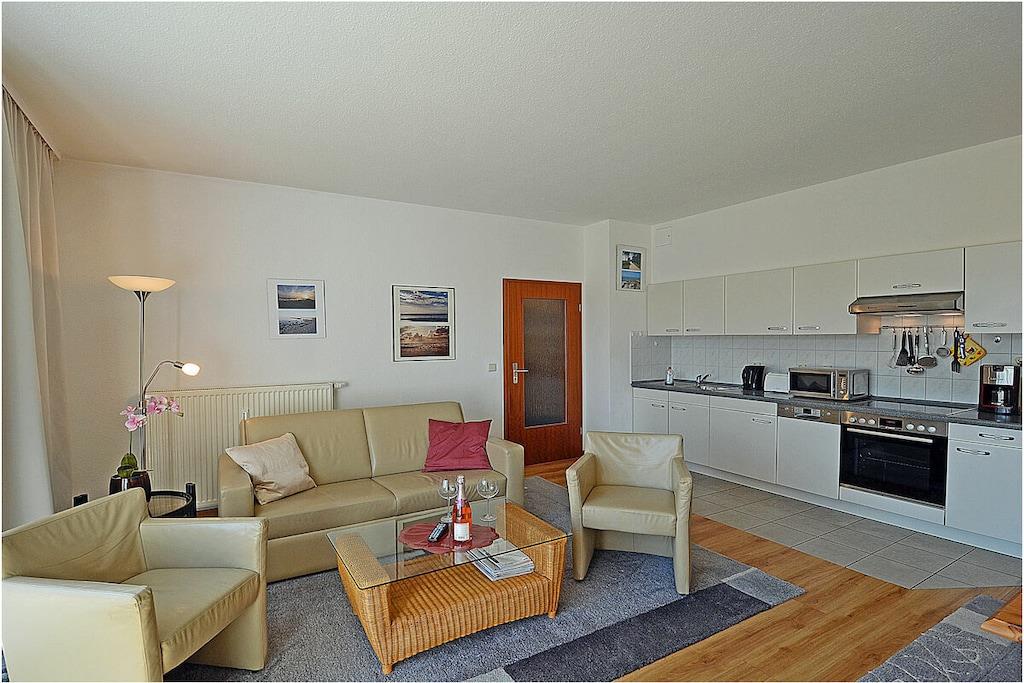 “Herzlich willkommen im Appartementhaus „Haus Glowe” mit 21 Wohneinheiten. Die Ferienwohnung „Seemöwe“ ist modern eingerichtet. Der feinsandige Badestrand ist nur 250 m entfernt. Der große Südbalkon mit elektrischer Fensterjalousie ist 18 m² und lädt zum Verweilen ein. Die „Seemöwe“ ist eine Nichtraucherwohnung. Alle Fenster sind mit Jalousien ausgestattet. Waschmaschine und Wäschetrockner befinden sich im Objekt/ Dachboden (Gebühr 2,- pro Nutzung). Der PKW-Stellplatz ist direkt am Objekt mit der Nr. 17. Einkaufsmöglichkeiten, Bäcker und Restaurants sind in unmittelbarer Nähe. Es gibt optimale Rad- und Wandermöglichkeiten um die Insel zu erkunden. Haustiere nach Absprache (Gebühr Euro 5,-/ pro Haustier/ pro Nacht) Goßzügiger Wohn- Essbereich mit gemütlicher Couchlandschaft, TV/ Sat (Flatscreen), DVD-Player, Radio/ CD und Blu-ray Player, Bücher und Gesellschaftsspiele für gemütliche Abende, offene komplett ausgestattete Einbauküche mit diversen Elektrogeräten, 4- Plattenherd (Ceranfeld), Backofen, Kühlschrank, Geschirrspüler, Mikrowelle und diversen Elektrogeräten, 1. Schlafzimmer mit Doppelbett ( 2 Matratzen je 90 x 200), TV/ Sat, gemütlicher Sessel und Kleiderschrank, 2. Schlafzimmer mit zwei Einzelbetten (90 x 200) und Kleiderschrank, Bad mit Dusche/ WC, Fön, großer Balkon mit Gartenmöbeln und Sonnenschirm.