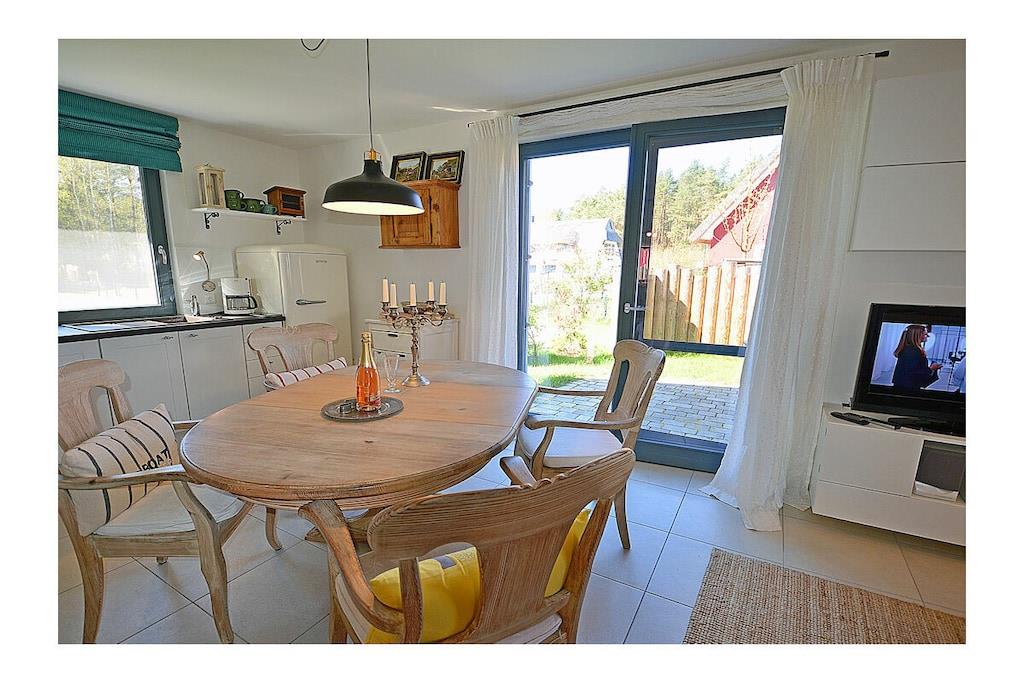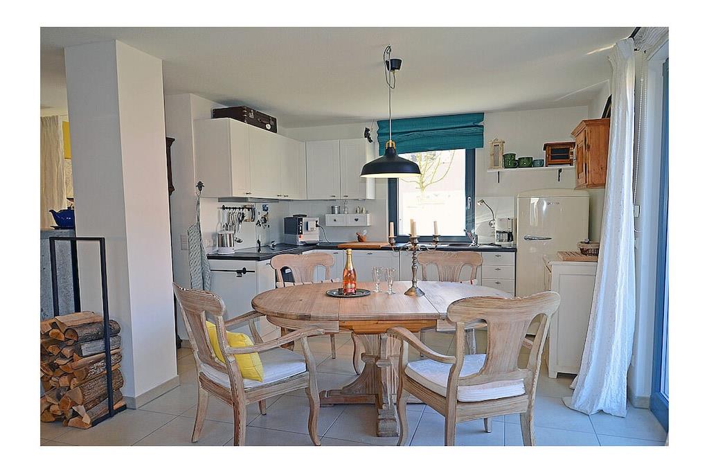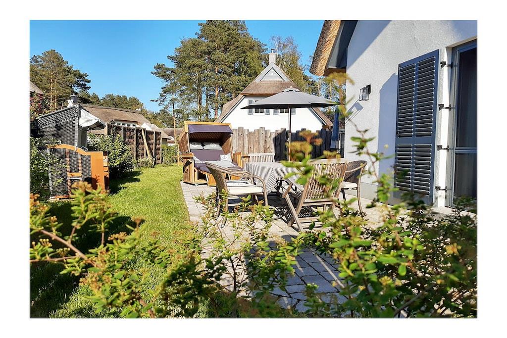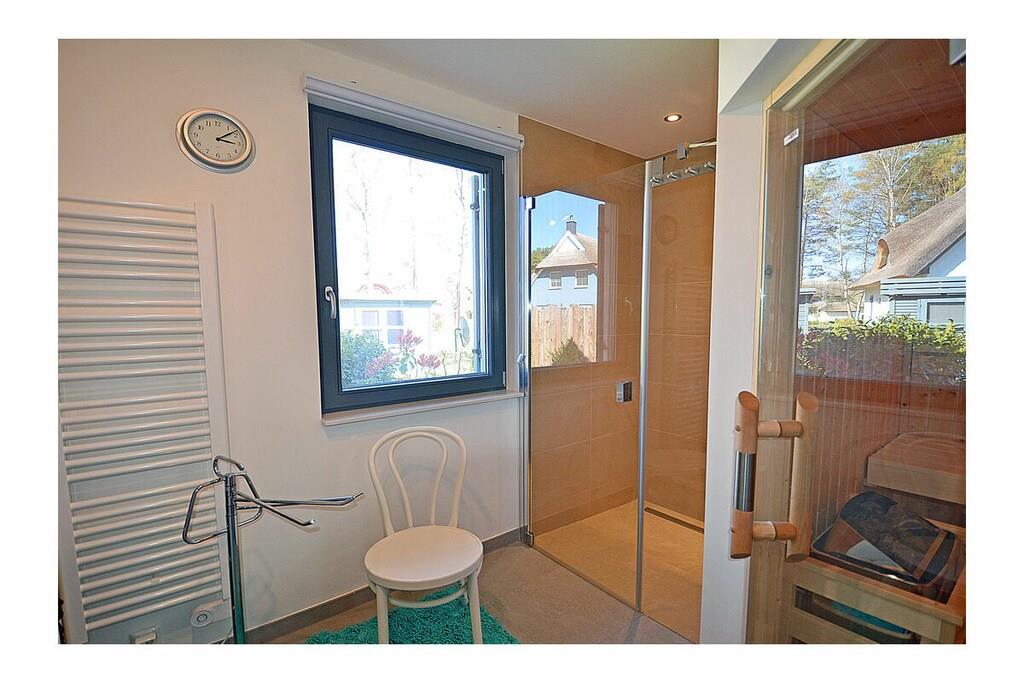 Erdgeschoss: großzügiger Wohnbereich mit gemütlicher Couchlandschaft, Kamin, TV (Flatscreen), Radio/CD, Bücher und Gesellschaftsspiele für gemütliche Abende, Fußbodenheizung im gesamten Haus vorhanden, komplett ausgestattete hochwertige Einbauküche mit 4-Plattenherd (Ceran) und Backofen, Kühlschrank mit großem Gefrierfach, Geschirrspüler und diversen Elektrogeräten, Gäste-WC, Sauna mit ebenerdiger Regendusche, Hauswirtschaftsraum mit Waschmaschine und Trockner (ohne Gebühr), Internet (WLAN) steht kostenfrei zur Verfügung Obergeschoss: 1. Schlafzimmer mit einem Doppelbett (Matratze je 90 x 200) und großem Kleiderschrank, 2. Schlafzimmer mit einem Doppelbett (Matratze je 90 x 200cm), ein ausklappbares Einzelbett (90cm x 200cm) und Kleiderschrank, Bad mit Dusche und WC, Kosmetikspiegel und Föhn Außenbereich: gemütliche Terrasse mit einem XL-Strandkorb und einem normalen Strandkorb, Gartenmöbel für 6 Personen, zwei Sonnenschirme und vier Sonnenliegen, Grillmöglichkeit besteht (elektronischer Tischgrill vorhanden) Erholung und Entspannung unter Reet – im Ferienhaus „Sansibar“ Die moderne Ferienhaushälfte umfasst ein Grundstück von ca. 406 qm. „Sansibar“ ist ein Nichtraucherhaus. Fußbodenheizung ist im gesamten Haus. Im Erd- und Obergeschoss sind Fliegenschutzgitter vorhanden. Kinderhochstuhl & Kinderreisebett mit Inlett stehen zur Verfügung. Für entspannte Strandtage und dem Schutz vor der Sommersonne gibt es eine Strandmuschel. Ein Windschutz und auch Sandspielzeug für Kinder runden den Badetag an der Ostsee ab. Eine abschließbare Fahrradabstellmöglichkeit im Gartenhaus ist vorhanden. (Drei Fahrräder stehen zur Verfügung und können gerne genutzt werden-ohne Gewähr), Ein PKW-Stellplatz befindet sich direkt am Objekt. Nach einem ausgedehnten Strandspaziergang, einem Badetag oder einem Ausflug zu einer der zahlreichen Sehenswürdigkeiten der Insel können Sie es sich vor dem Kaminofen oder auf der Gartenterrasse gemütlich machen und den Tag entspannt ausklingen lassen. Einkaufsmöglichkeiten, Bäcker, Restaurants und ein Getränkemarkt finden Sie in unmittelbarer Nähe. Haustiere mit Rücksicht auf Allergiker sind leider nicht gestattet!