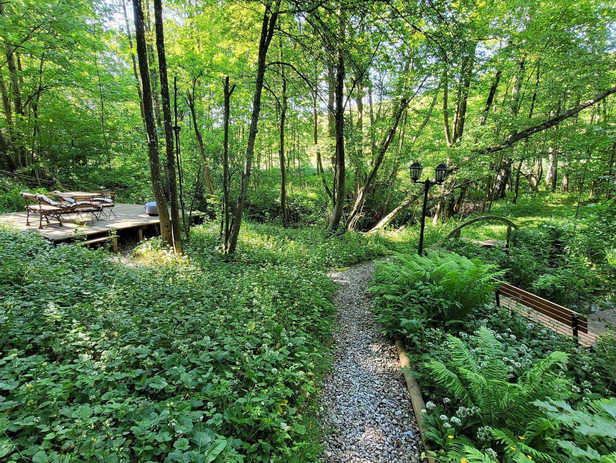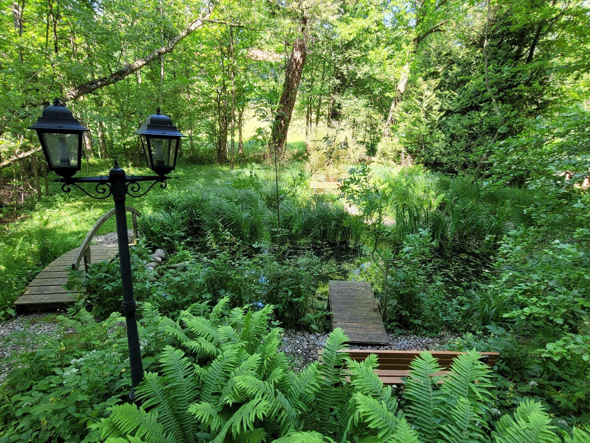 Freistehendes Haus zur Alleinnutzung auf 2500 m² Gartenpark mit Bachlauf, Teich und Badesteg