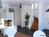 Im Wohnbereich befindet sich ein offener Kamin mit Glasfront