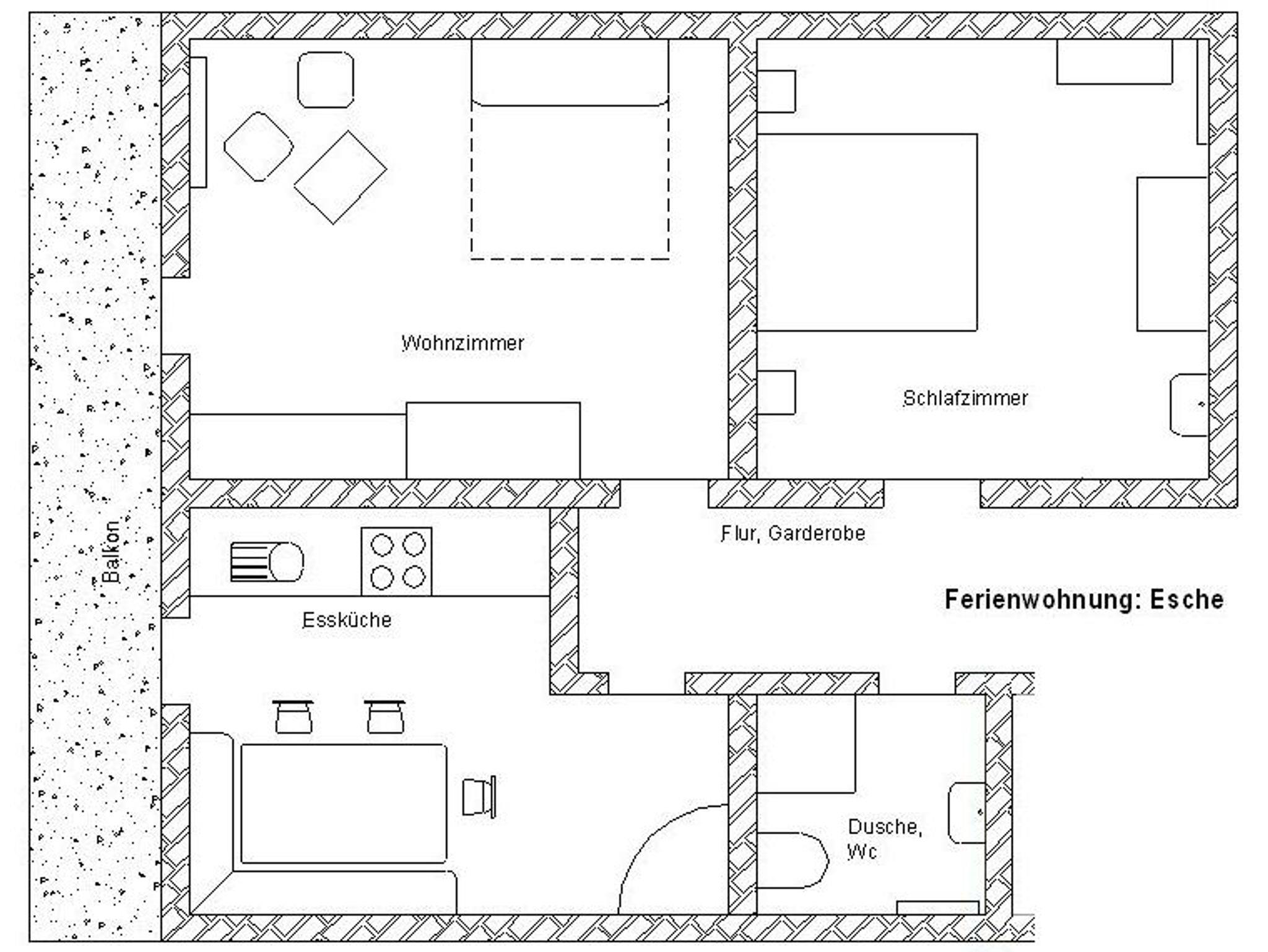 Genießen Sie Ihren Urlaub in unserer gemütlichen ***Familienwohnung. Sie liegt im 2. Obergeschoss mit leichter Dachschräge. Die Wohnung für 4 Personen ist 60 m² groß und verfügt über 2 getrennte Schlafräume. Sie hat außerdem einen sehr geschützten Ostbalkon, eine geräumige Wohnküche mit kompletter Ausstattung incl. Spülmaschine. Im Wohnzimmer mit Sitzecke, SAT-TV und Safe, können die zwei Sofas mit richtigen Matratzen zu Betten umfunktioniert werden. Im Schlafzimmer mit Doppelbett besteht die Zustellmöglichkeit für 1 Kinderbett. Dusche und WC, Diele mit Garderobe. Bett- und Tischwäsche sowie Hand- und Duschtücher inklusive. Auf Wunsch Kinderbett und Hochstuhl für unsere kleinen Gäste. Kostenloses W-LAN